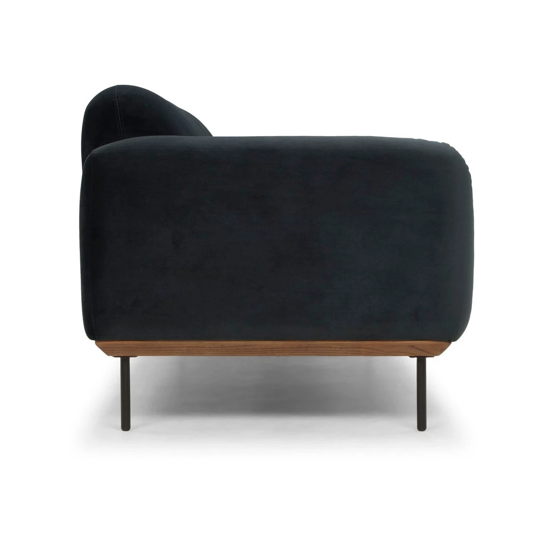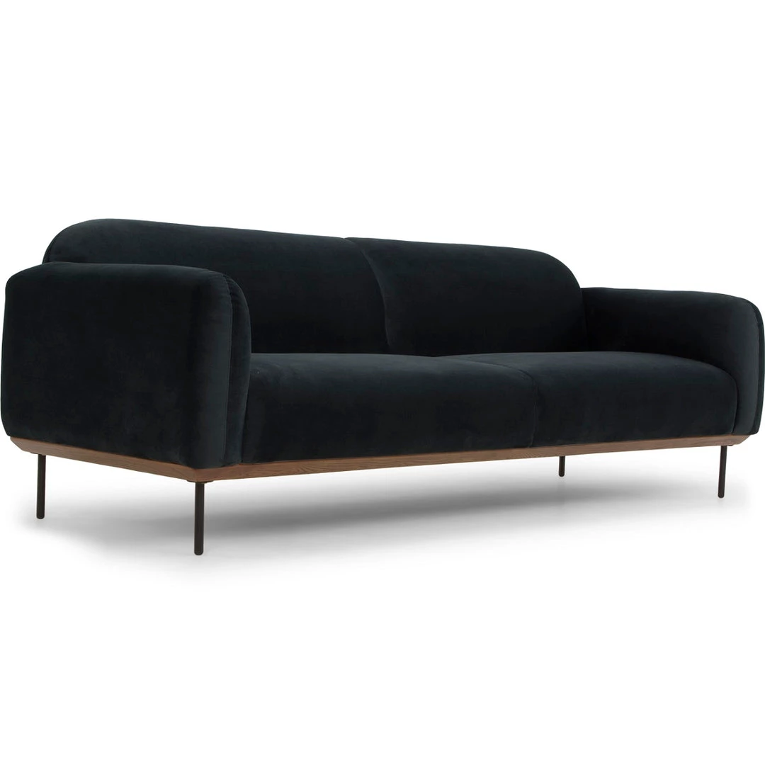 The gracefully composed Rooney Sofa exemplifies sculptured minimalism with its rounded upholstery and streamlined frame.