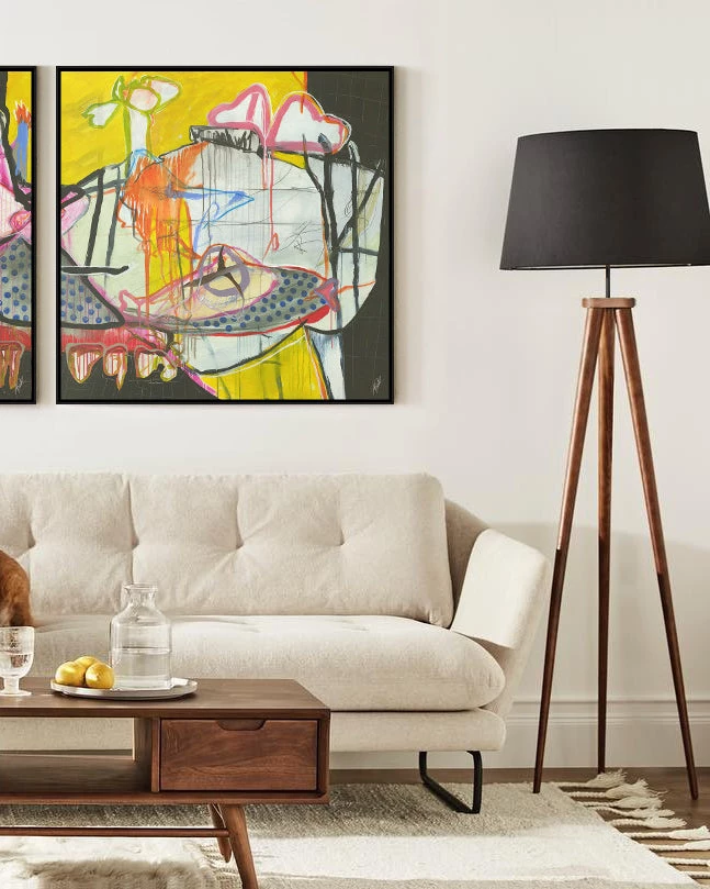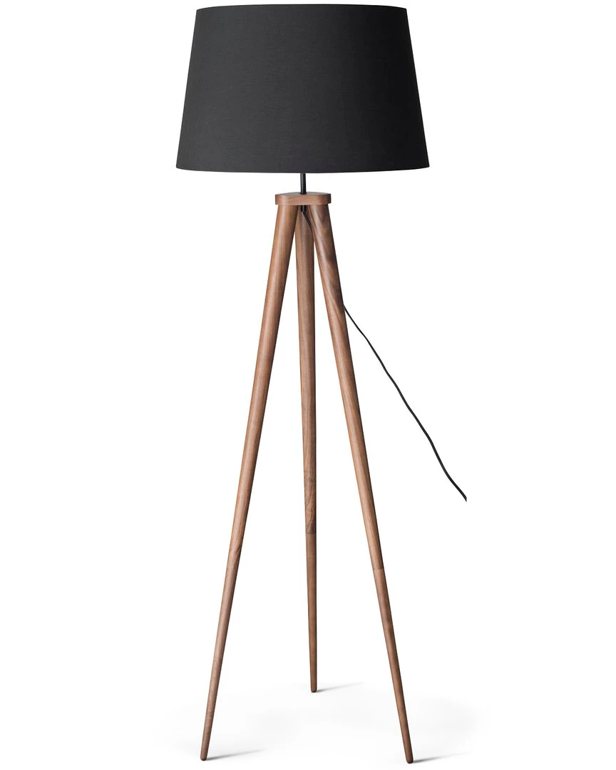 The walnut-stained 3-prong spiked wood base provides a solid foundation with mid-century modern vibes in the Triad Floor Lamp.