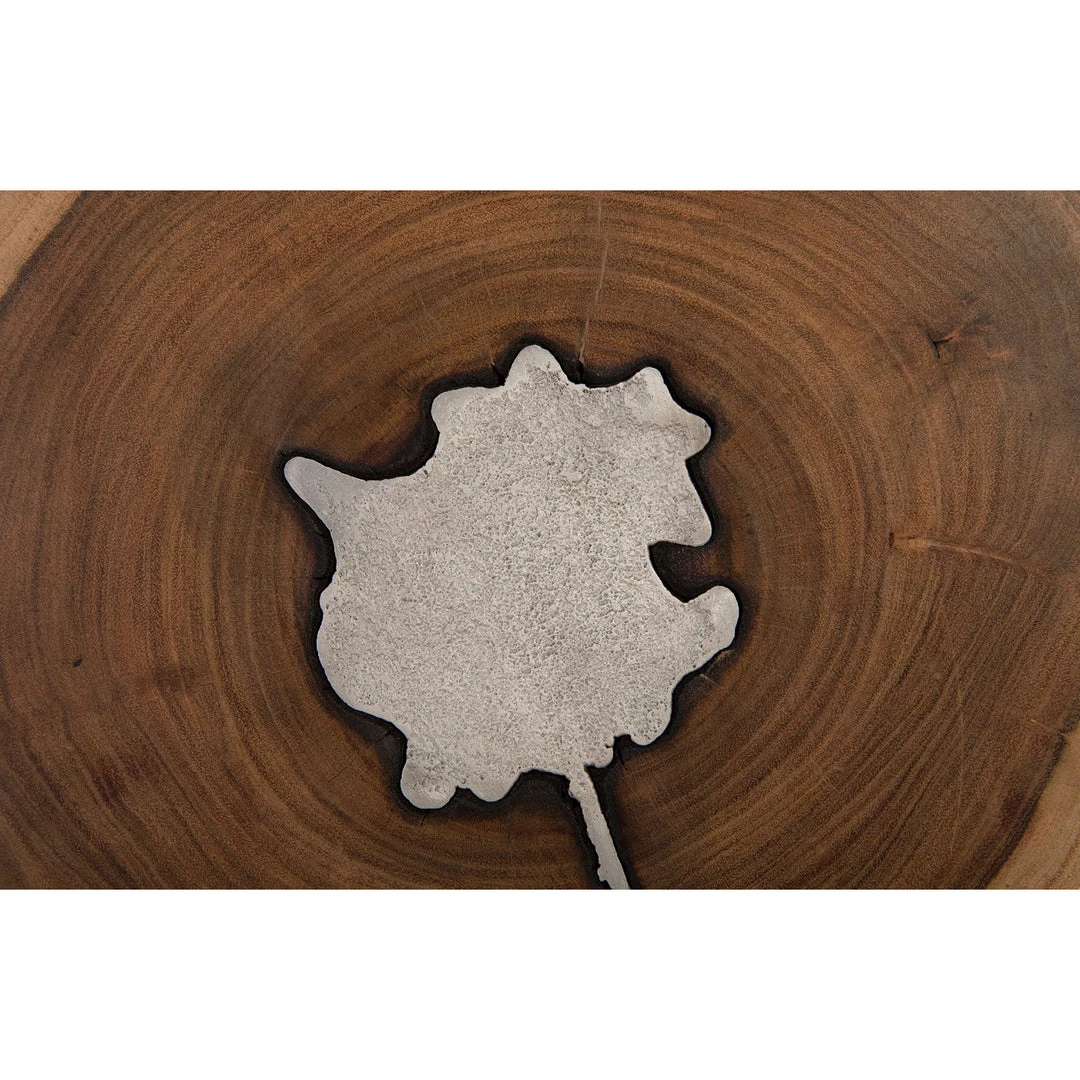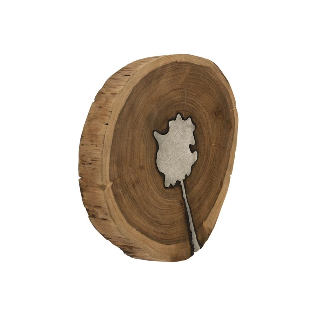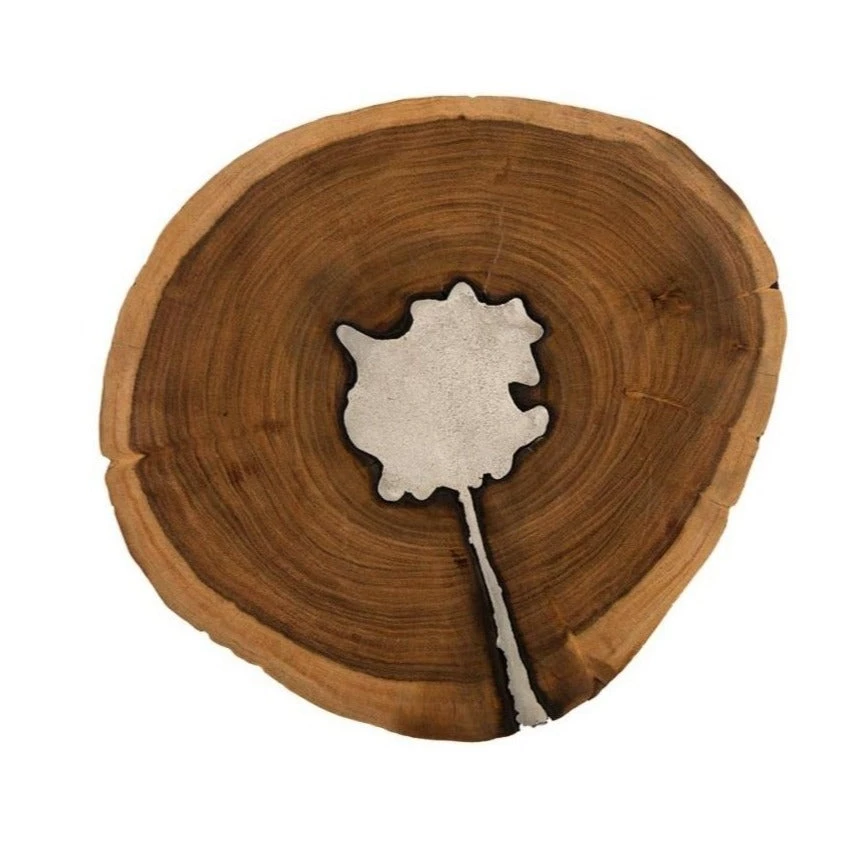 This piece is crafted with natural solid wood. The color and character of wood grain may vary and natural cracking will result in the aluminum fill pattern to differ from piece to piece.