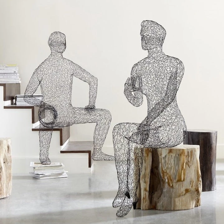 ONLY OUR MOST EXPERIENCED ARTISANS have the skills to execute our life-sized wire figures. And as any artist knows, hands, feet, and faces are the most challenging parts of the human form. Not for us! We focus on the details. The Crazy Wire Collection is modeled on vintage department store mannequins. The figures are made from metal wire and powder coated for durability.