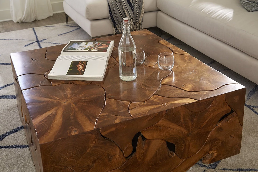 Rattling the status quo while participating in conserving our environment. Scrap pieces of scrap teak wood are hand assembled to create this organic table.