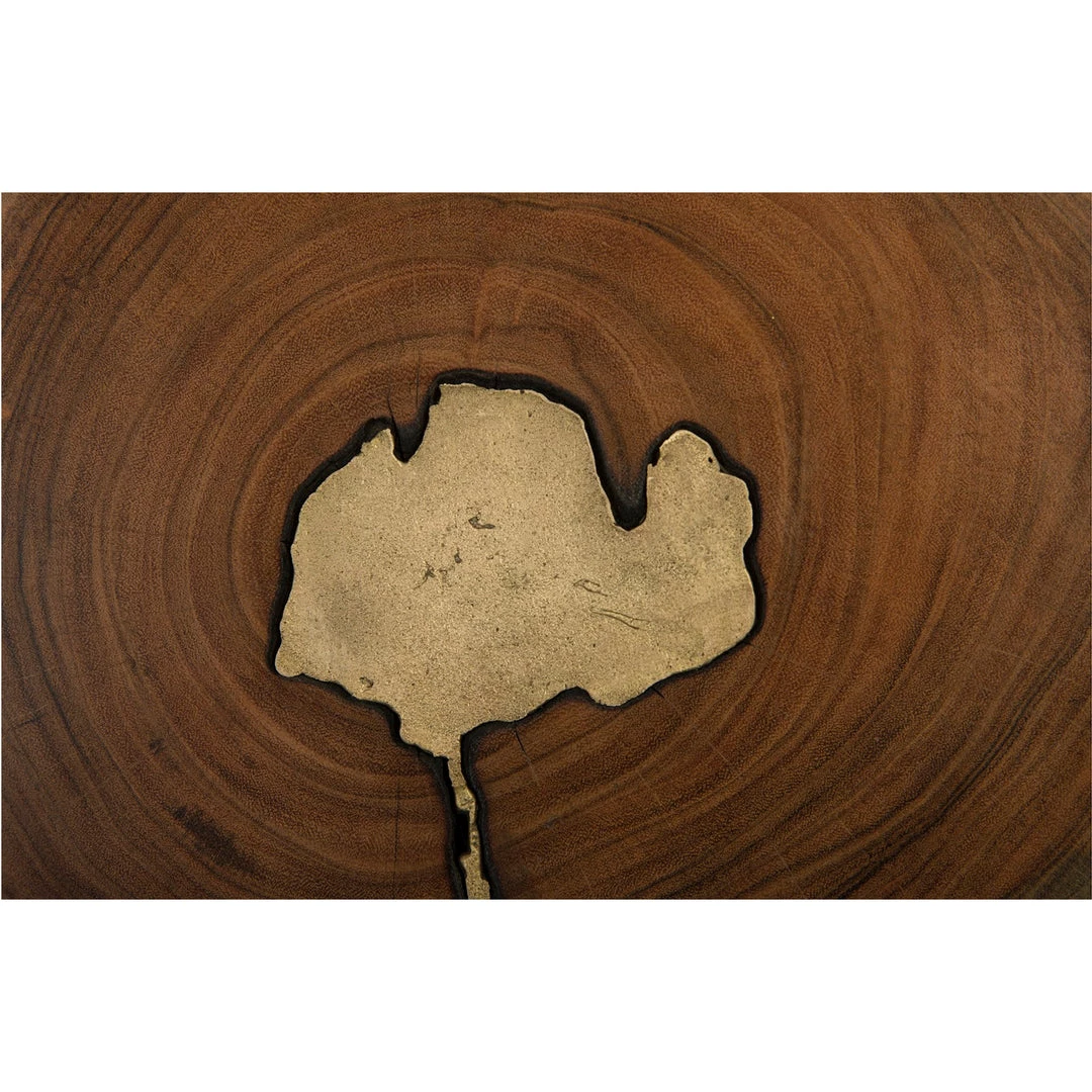 This piece is crafted with natural solid wood. The color and character of wood grain may vary and natural cracking will result in the aluminum fill pattern to differ from piece to piece.