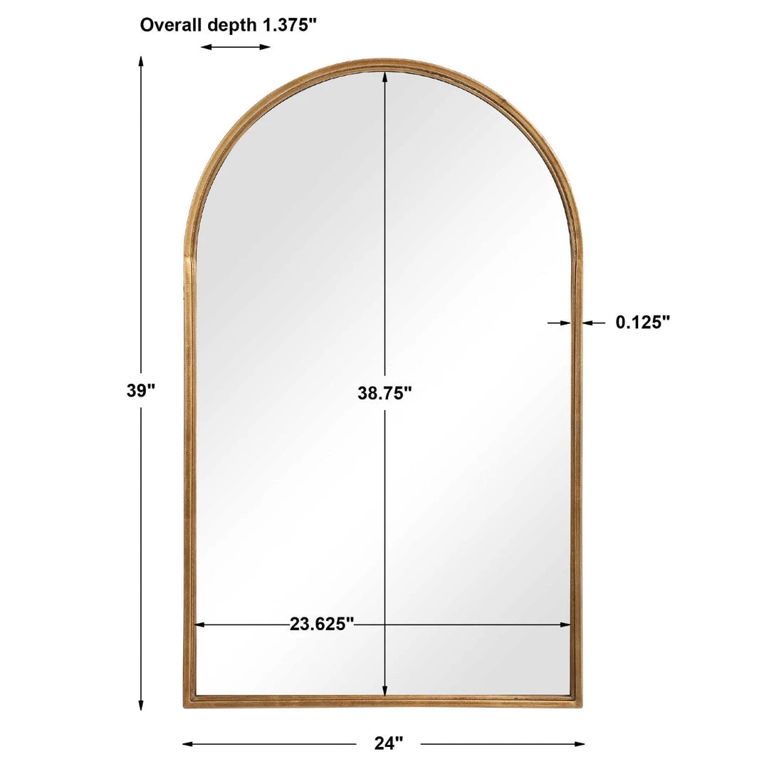 The simple, clean look of this metal arch top is enhanced by the thin frame profile. It is finished in a lightly antiqued gold leaf.