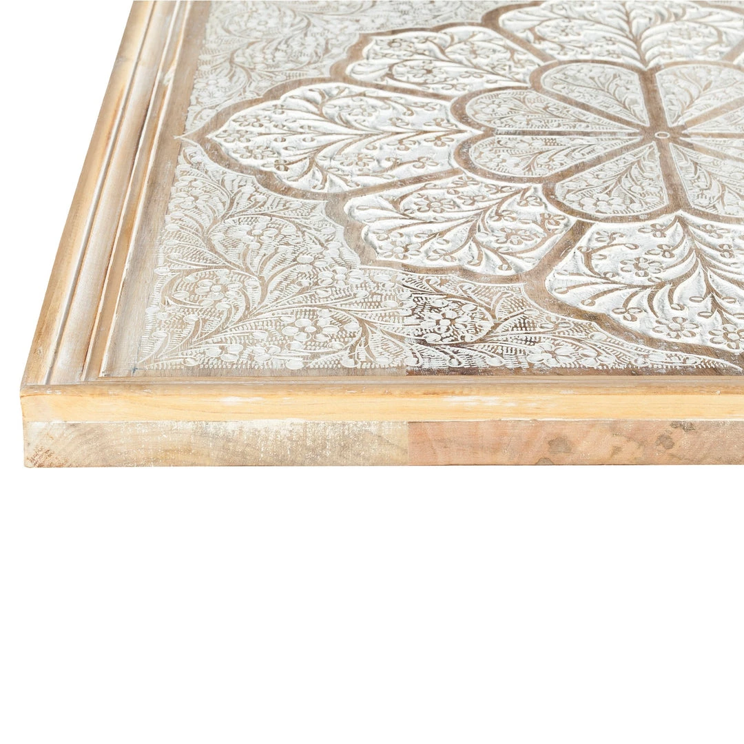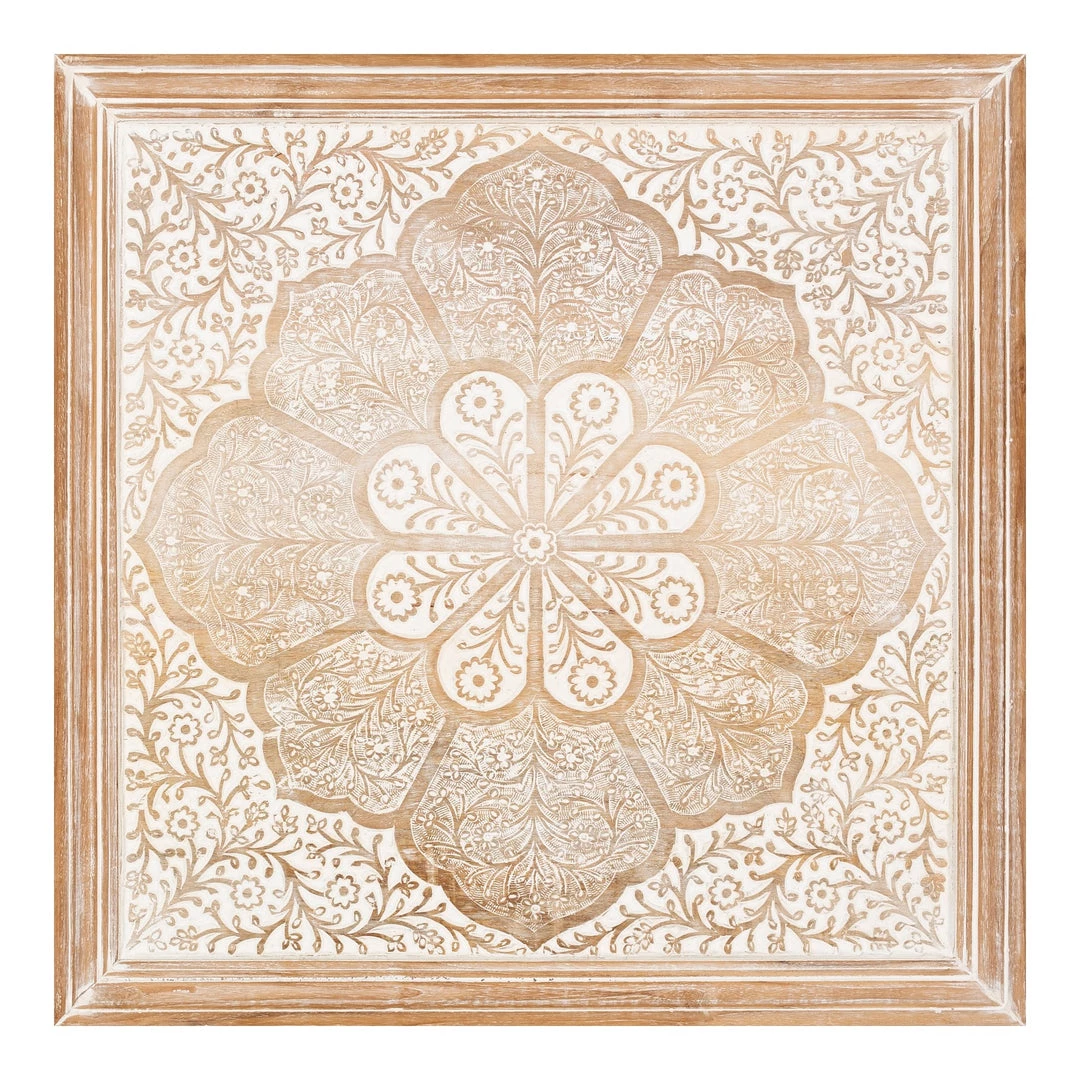 Made from tropical hardwoods, this bohemian wall art is hand painted with a global inspired design in a rustic white finish.