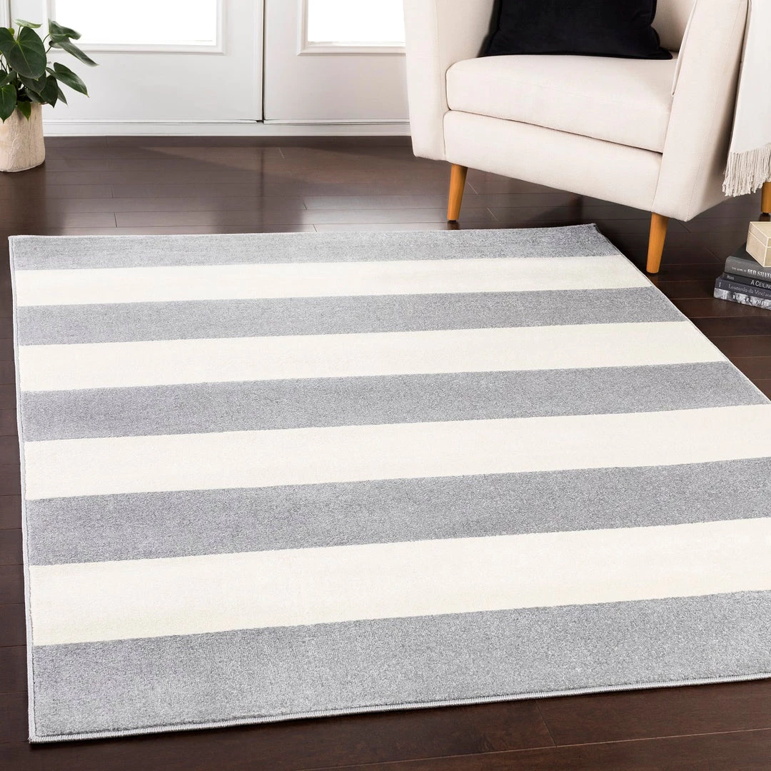 SURYA CHUNKY STRIPES RUG: GRAY + WHITE
