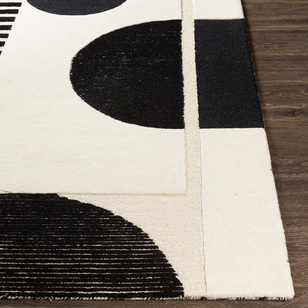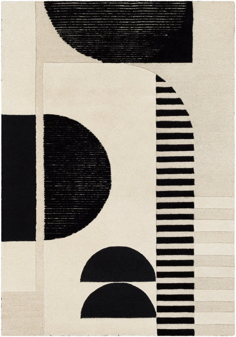 SURYA DECO MOON TUFTED WOOL RUG: BLACK, BEIGE