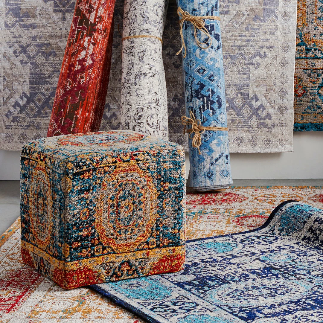 Our Dharma Ottomans fuse vintage-inspired character with punchy colors for a unique global style.