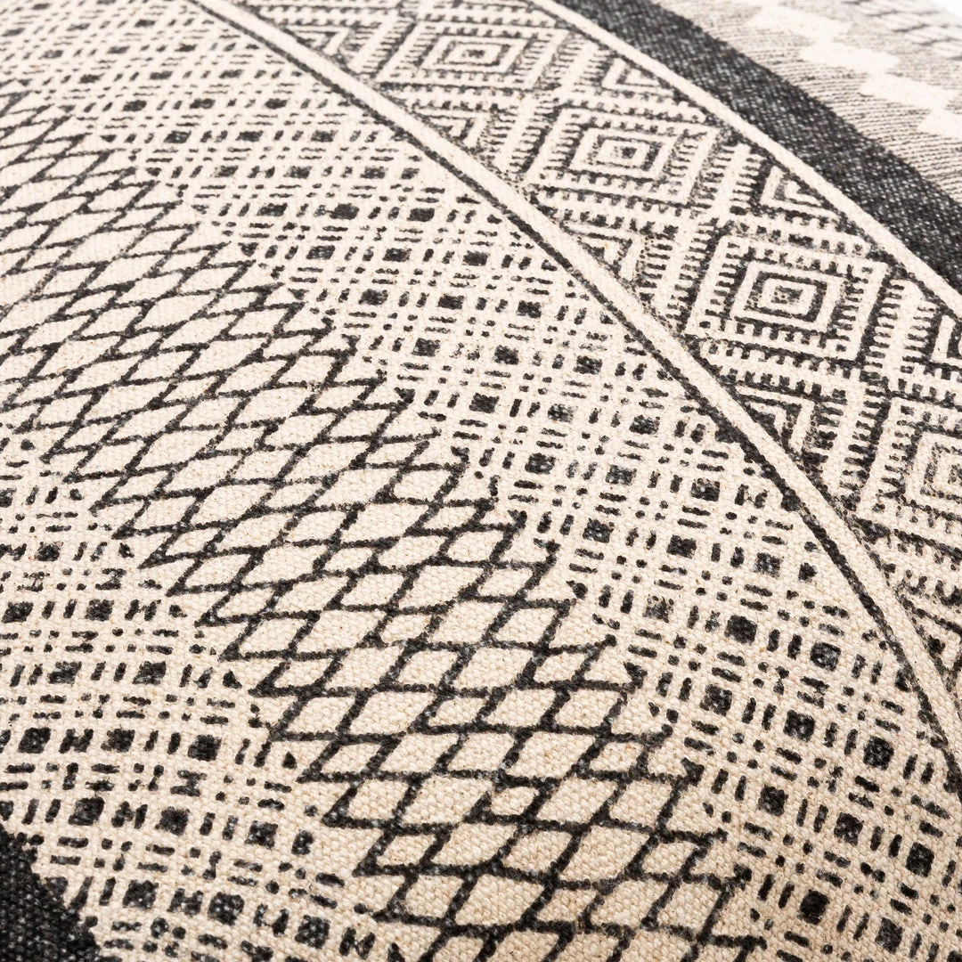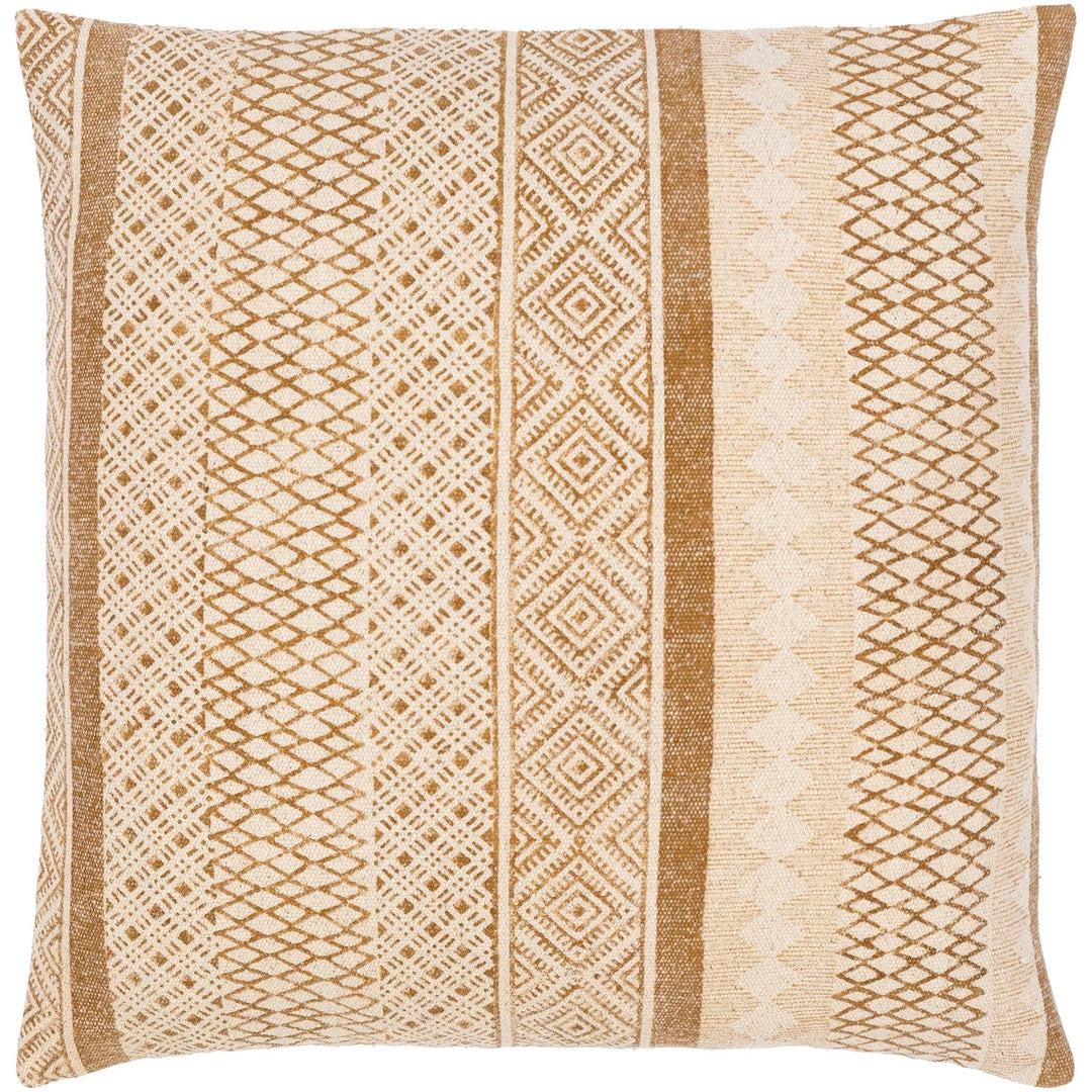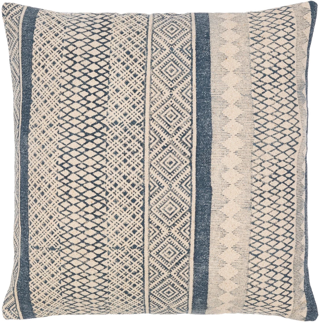 The Dola Pillow Collection brings eclectic charm with global inspired designs and graphic patterns in three mix and match colors block printed on a natural beige background.