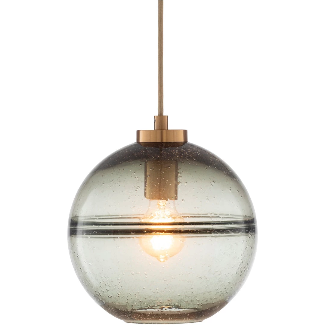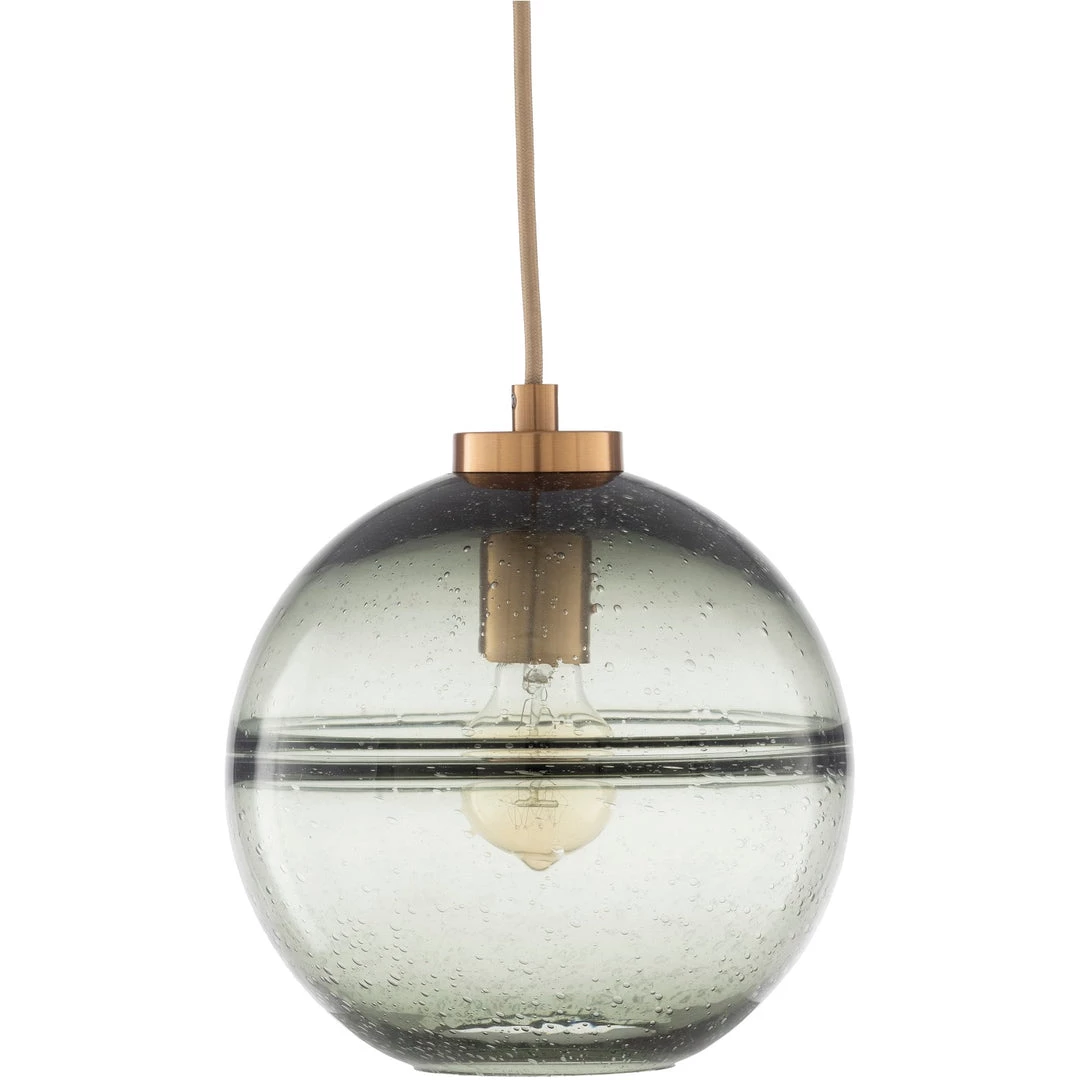 + Grey-Green seeded glass shade, Polished antique brass metal