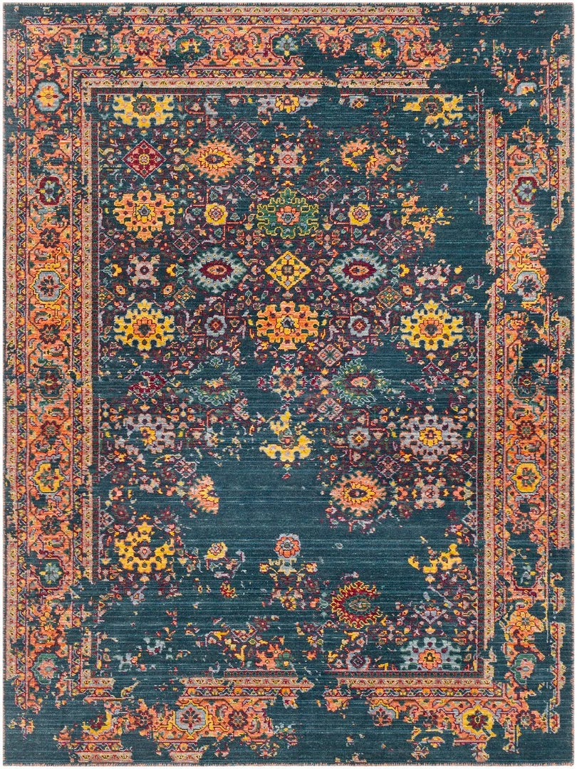 SURYA MIQUELLA WOOL RUG: NAVY, ORANGE MUTLI
