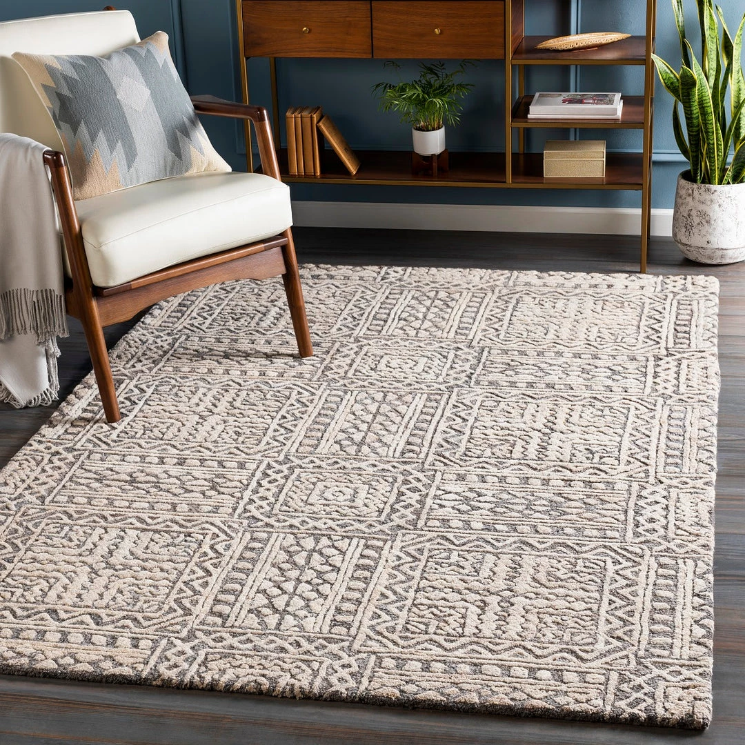 Hand-tufted by skilled artisans in India, the Montclair Rug Collection features contemporary textural and geometric patterns in a neutral palette. These exquisite rugs are constructed of wool and viscose that give a lustrous sheen that feels naturally soft underfoot.