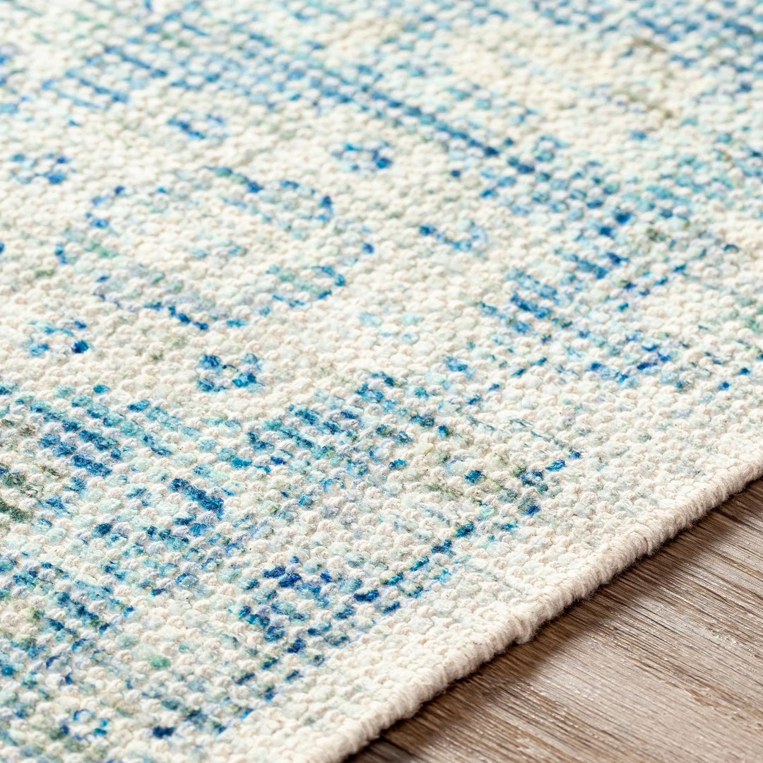 This distressed vintage print rug collection revives the antique-inspired look with a soft color palette finished with a refined fringe border.