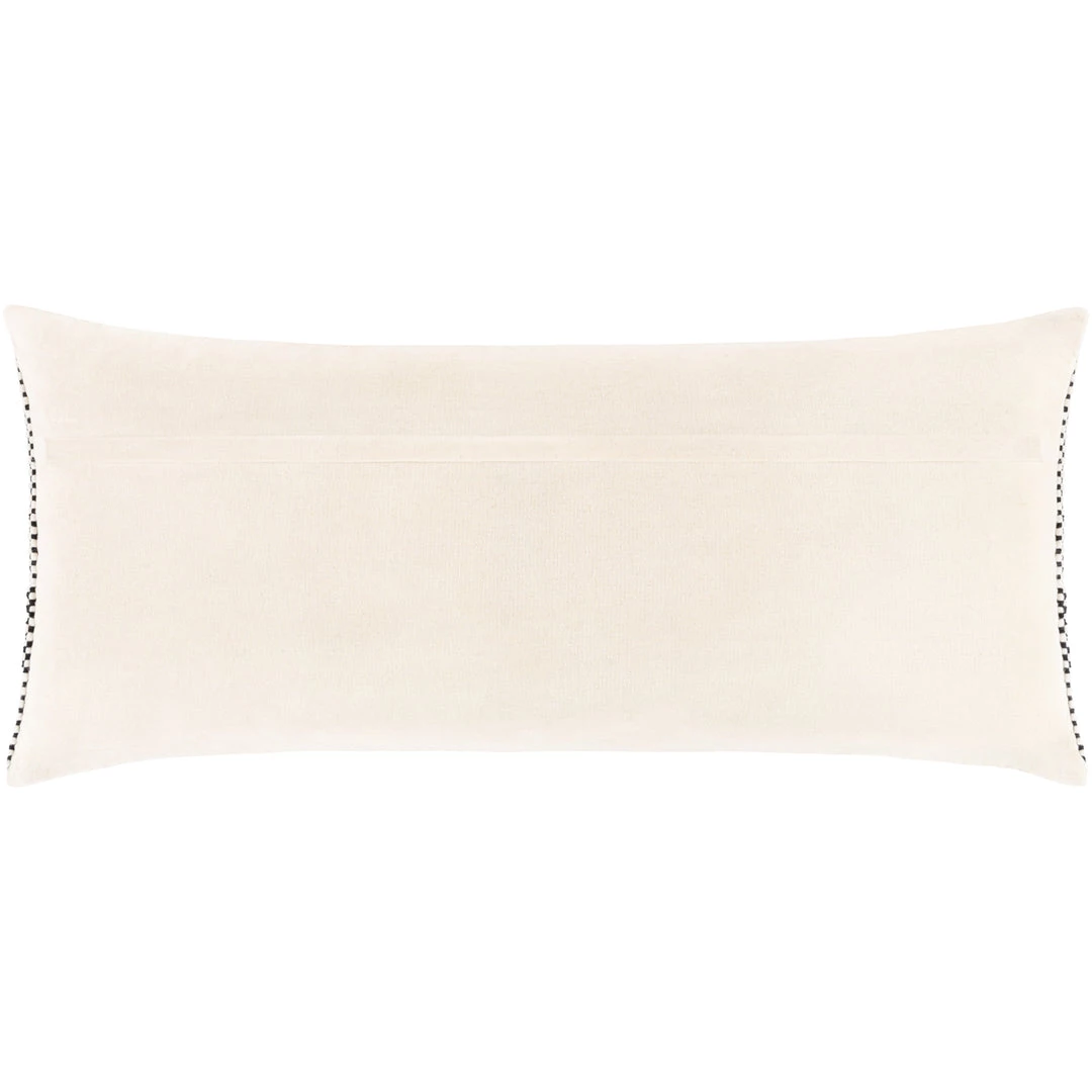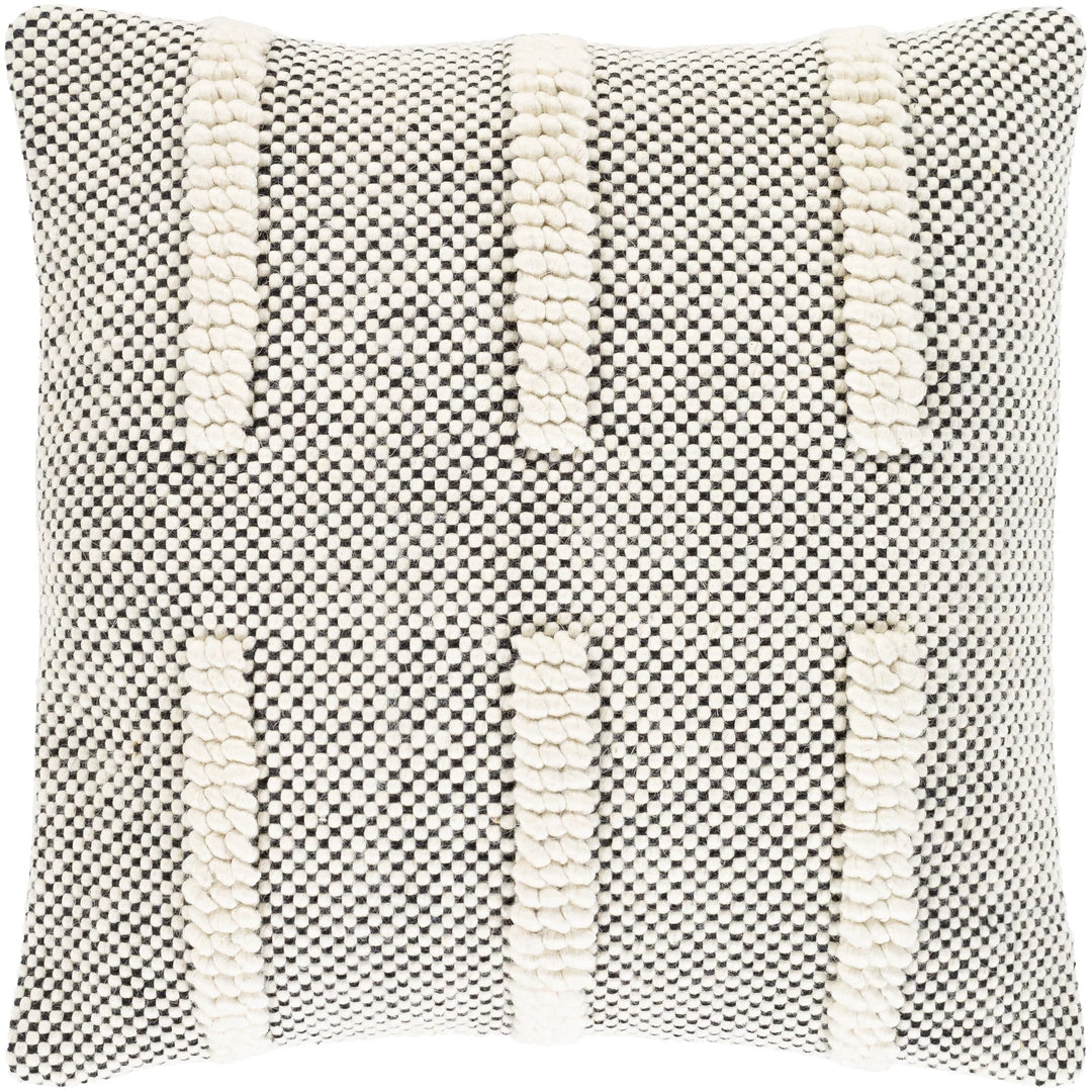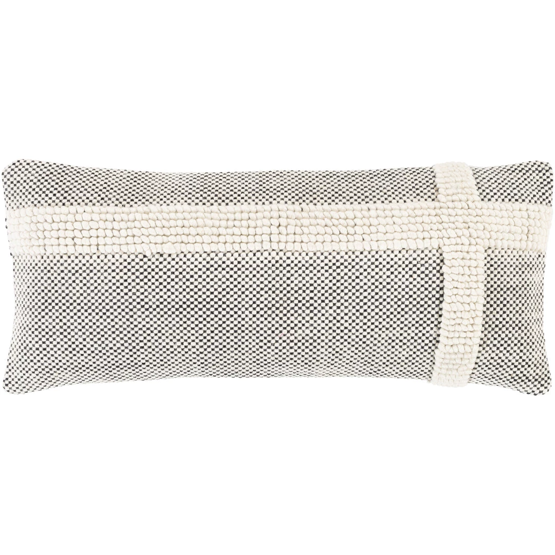 This hand-woven wool pillow collection mixes various cream textured stripe designs on a black and cream basket weave background. Bridger is available in 2 lumbar and 3 square sizes.