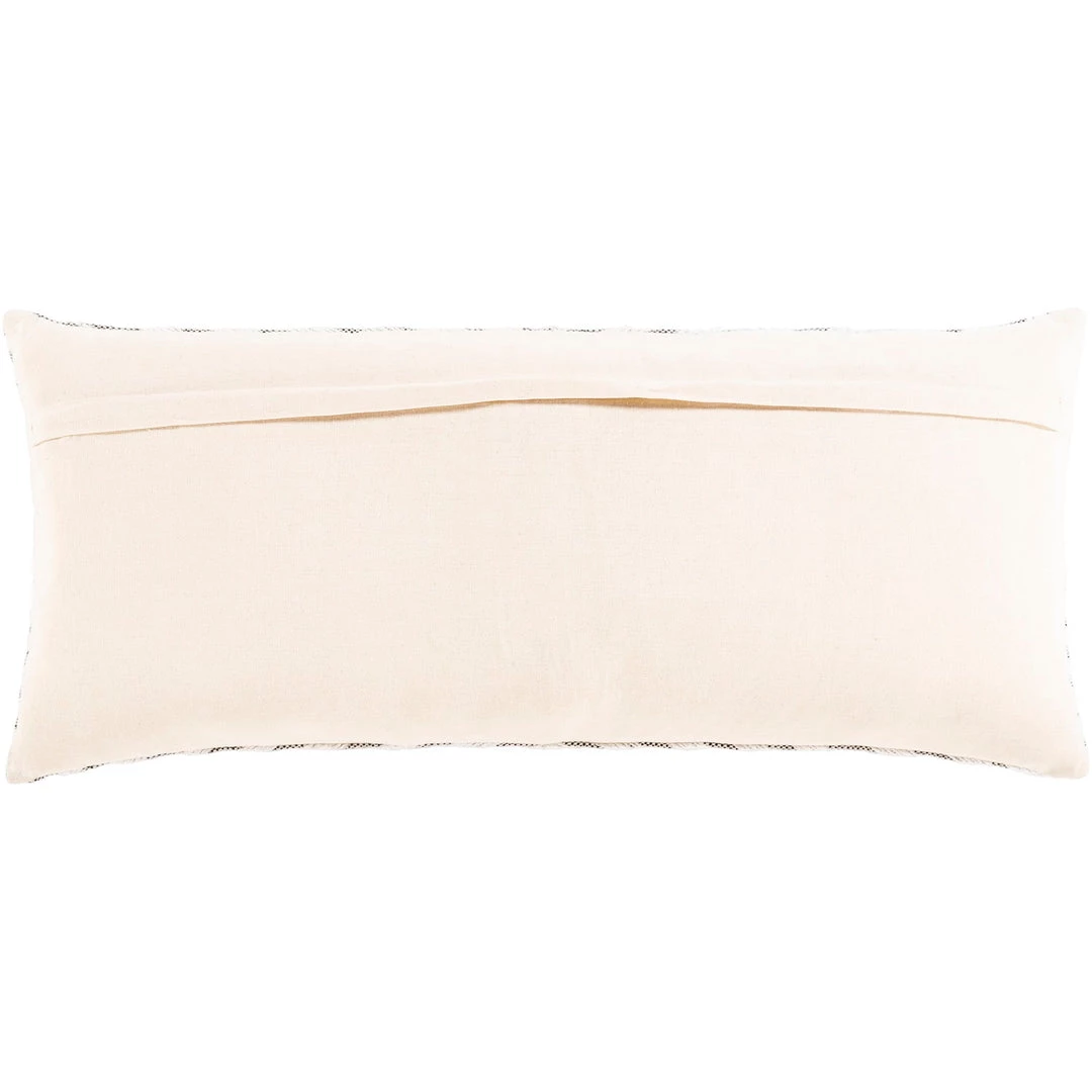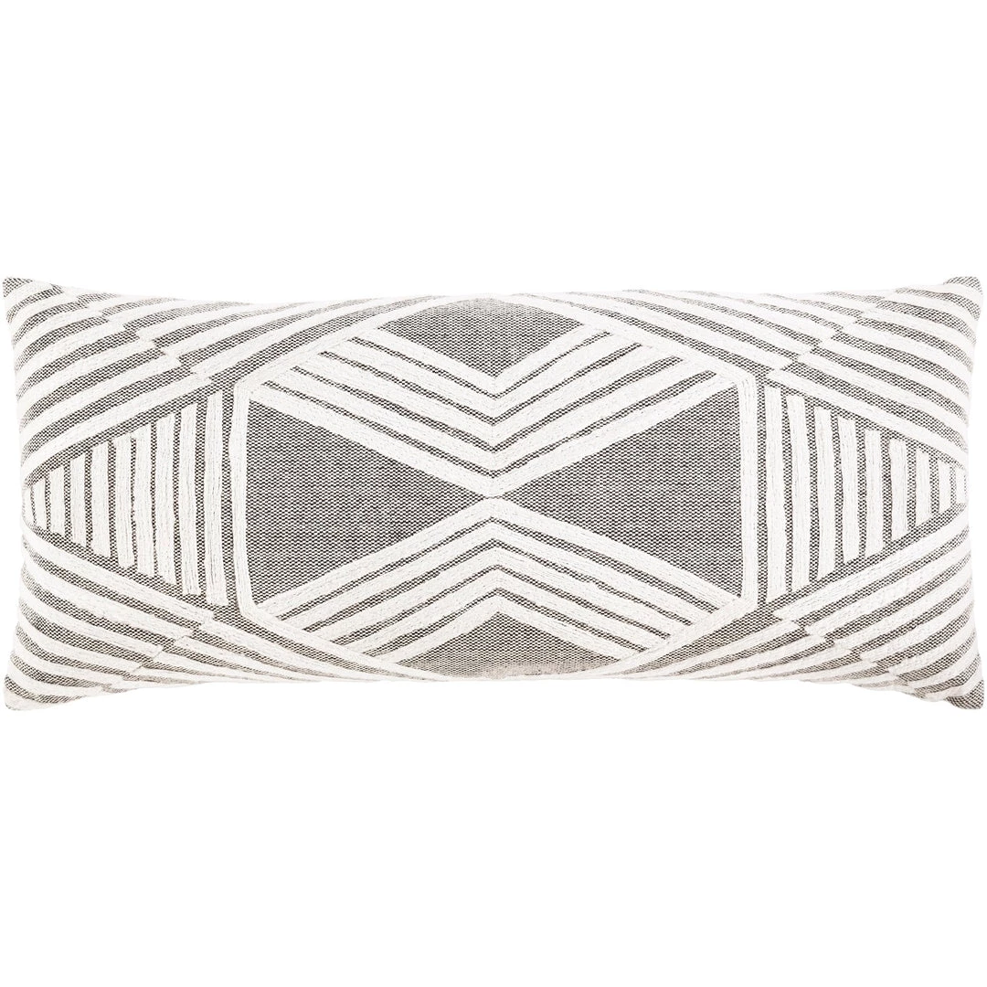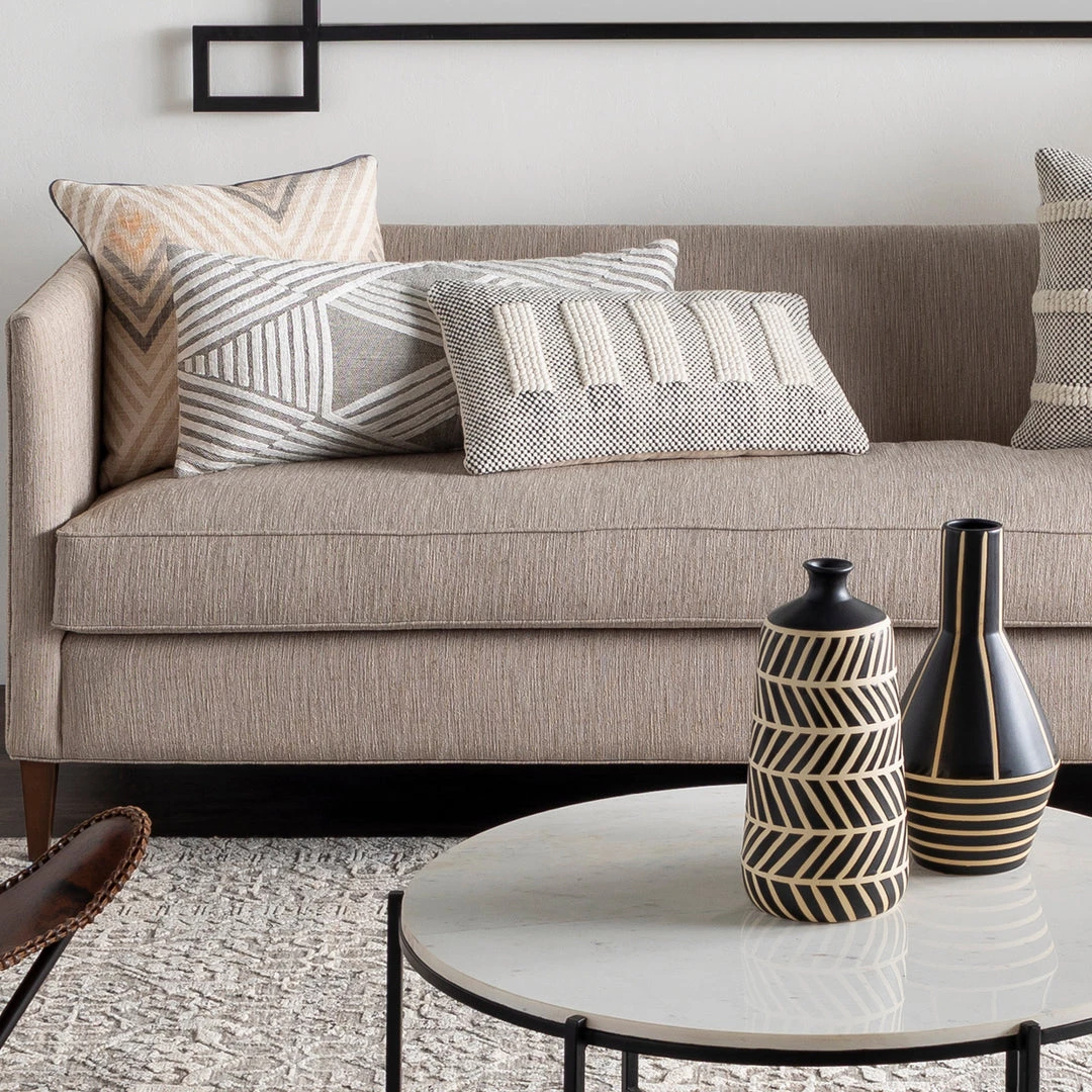 This hand woven accent pillow features graphic lines on a tonal black and cream background. They look beautiful on a bed or sofa to bring a modern minimalist feel into the room.