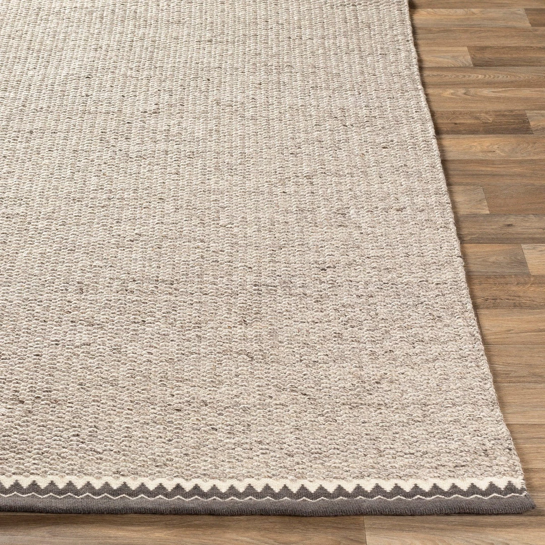 Expertly woven in a natural gray wool, the reversible Retro flat rug offers a casual look while the charcoal border detail adds a tribal vibe.