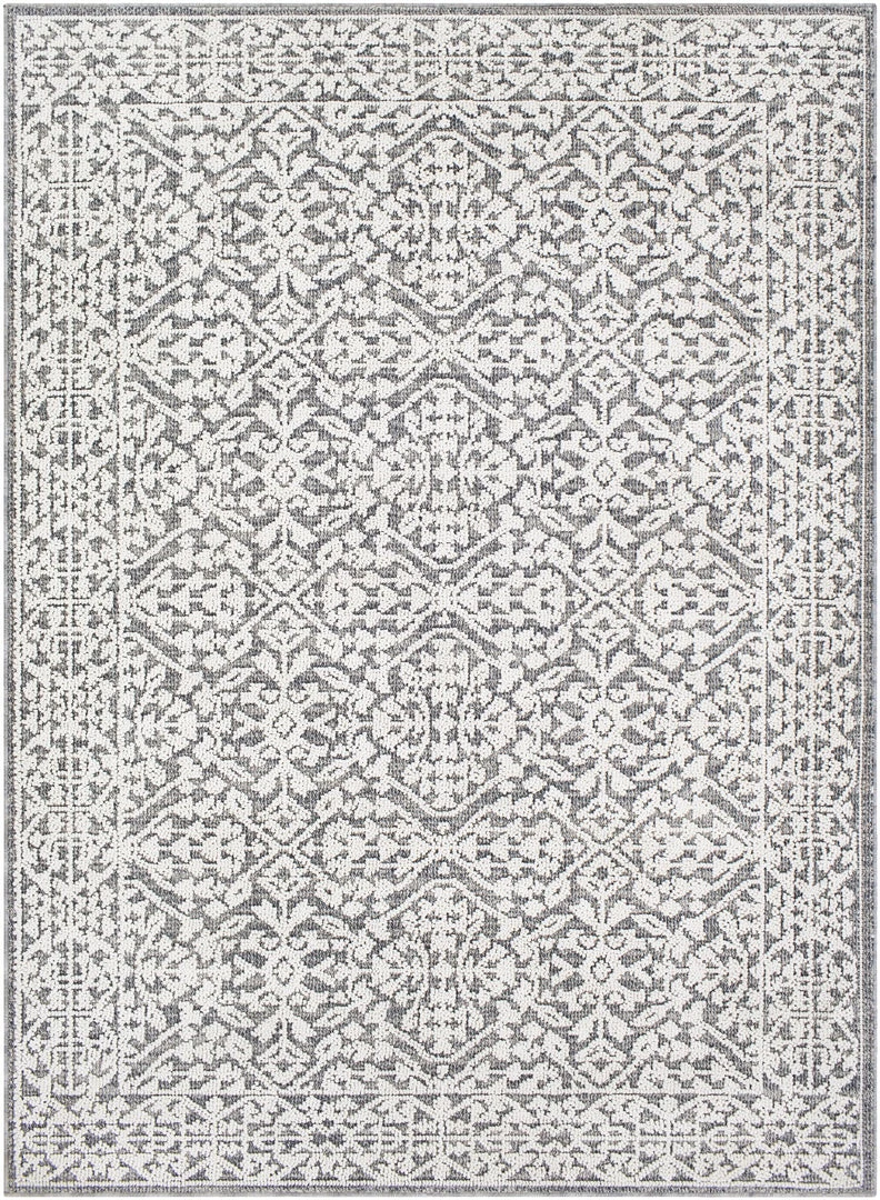 This transitional outdoor rug design is made of polypropylene, a material known to hold up to the elements and withstand wear and tear. Perfect for use on the patio, it can also be brought indoors to protect flooring in high-traffic areas.
