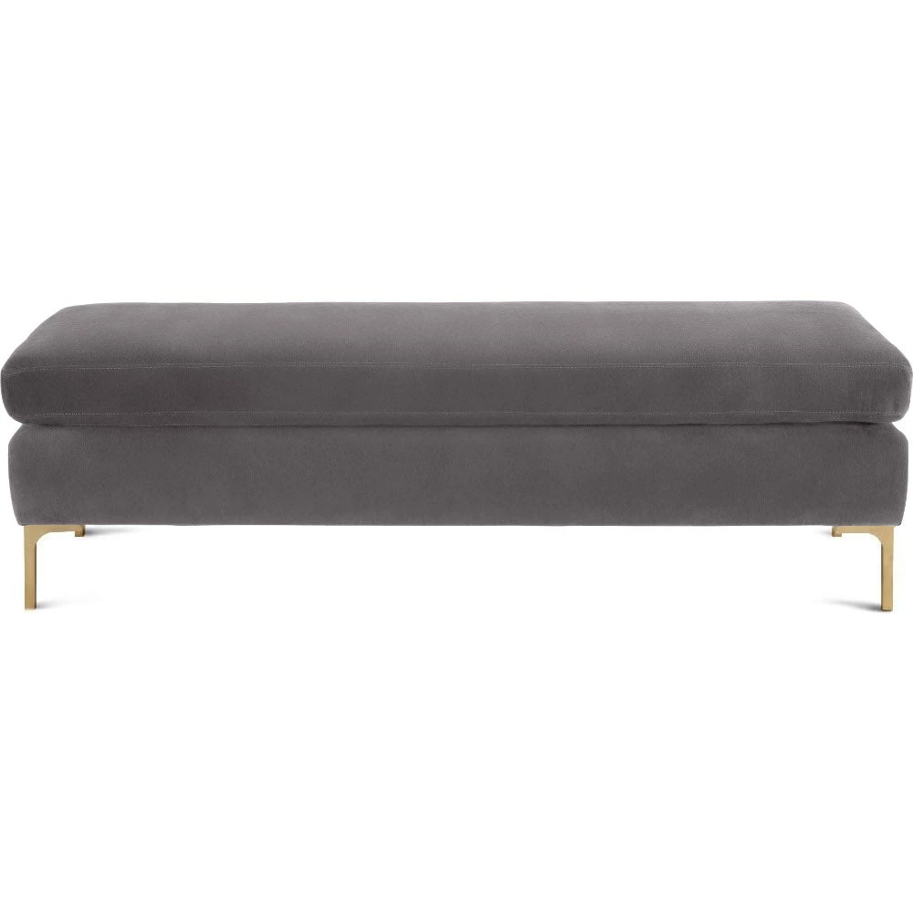 The dramatic Etta is quickly becoming a new fave. Inspired by modern design, the Etta Bench is clean and cultured with gold glamorous legs that pop against the soft velvet upholstery.