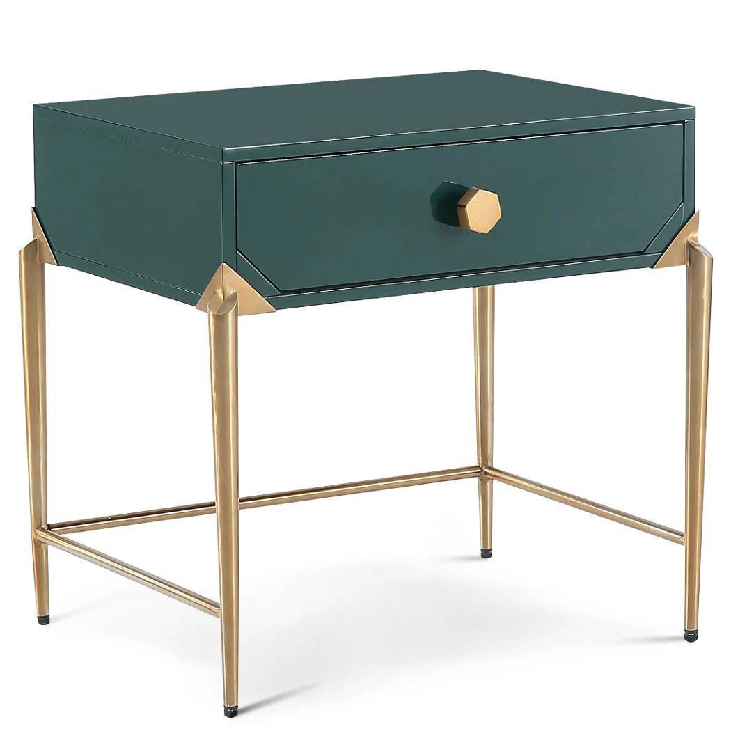 The Juniper Nightstand is perfect for adding a pop of color to your space. Featuring a green lacquered finish, brushed gold legs and hardware, this one drawer nightstand is as stylish as it is functional.