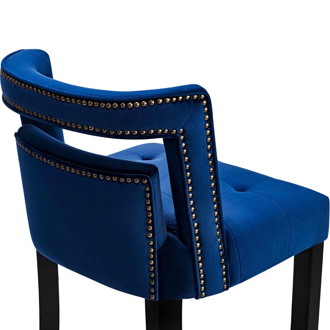 Not for the faint of heart, these stools will make you swoon. Making their debut with a bold statement, the York stool is available in bar and counter height options, in sumptuous grey or navy velvet. Hand-applied nailheads and metal tipped legs match the accompanying footrest.
