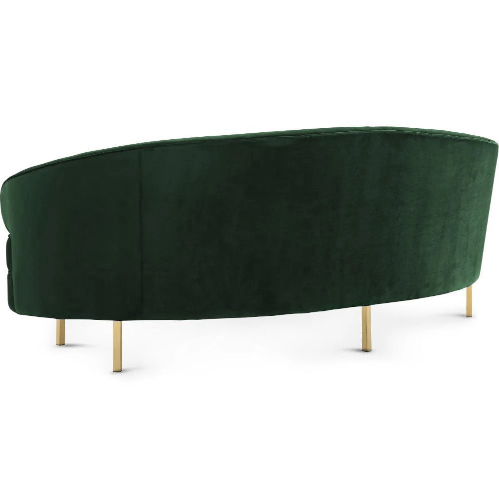 A modern chic design, the Julien Sofa is defined by its end to end sweeping curves. 100% super soft polyester velvet flows effortlessly for fresh sophistication complemented with gold stainless steel legs.
