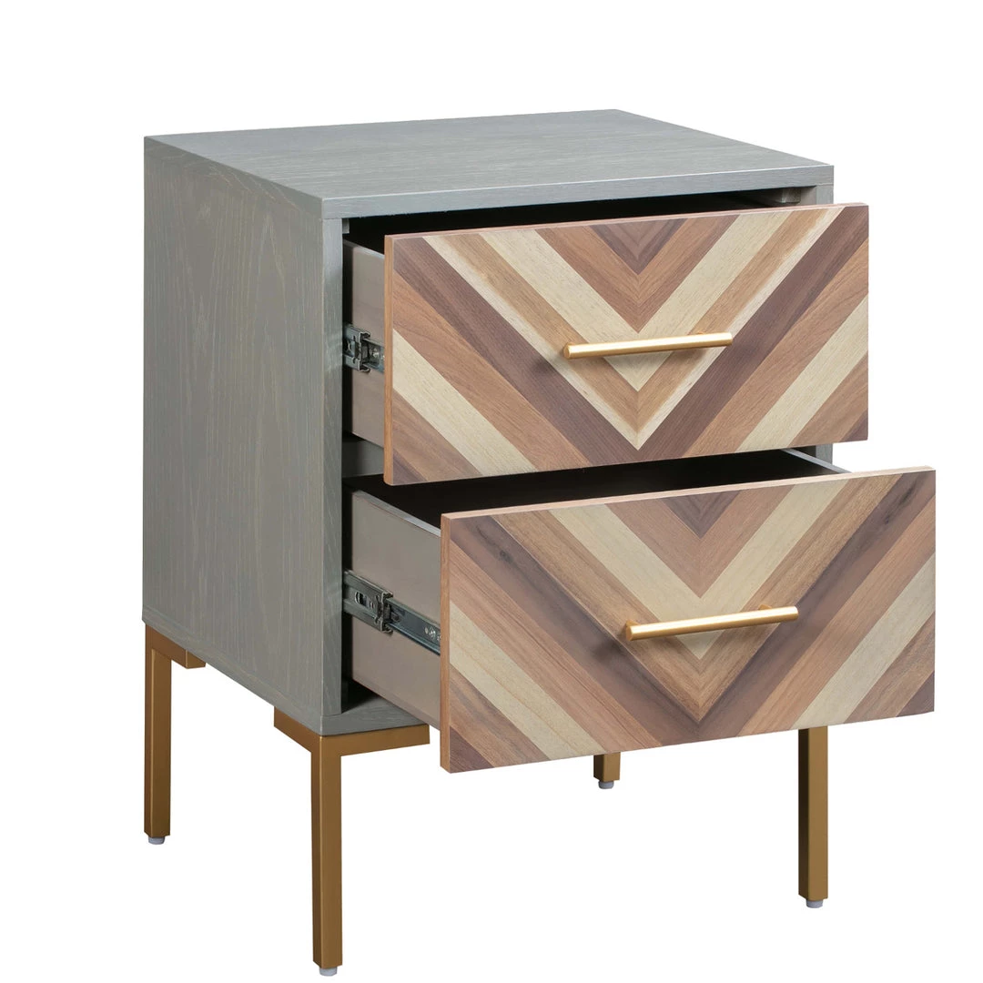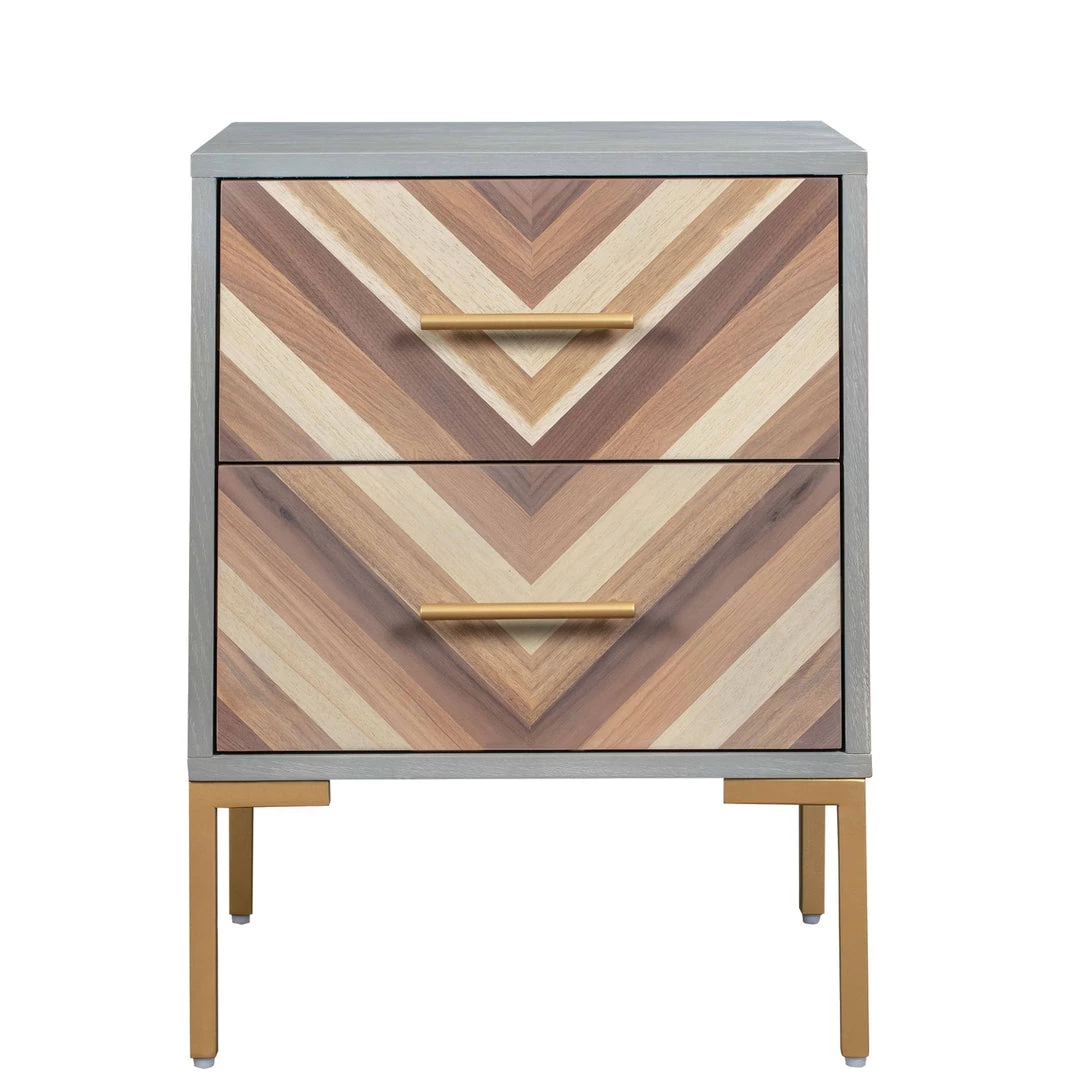 Chic in chevron, the Molly side table will make a statement beside a chair, sofa or bed. Stainless steel brushed gold legs and matching hardware help create the perfect combination of rustic and glam forming a sensational look.