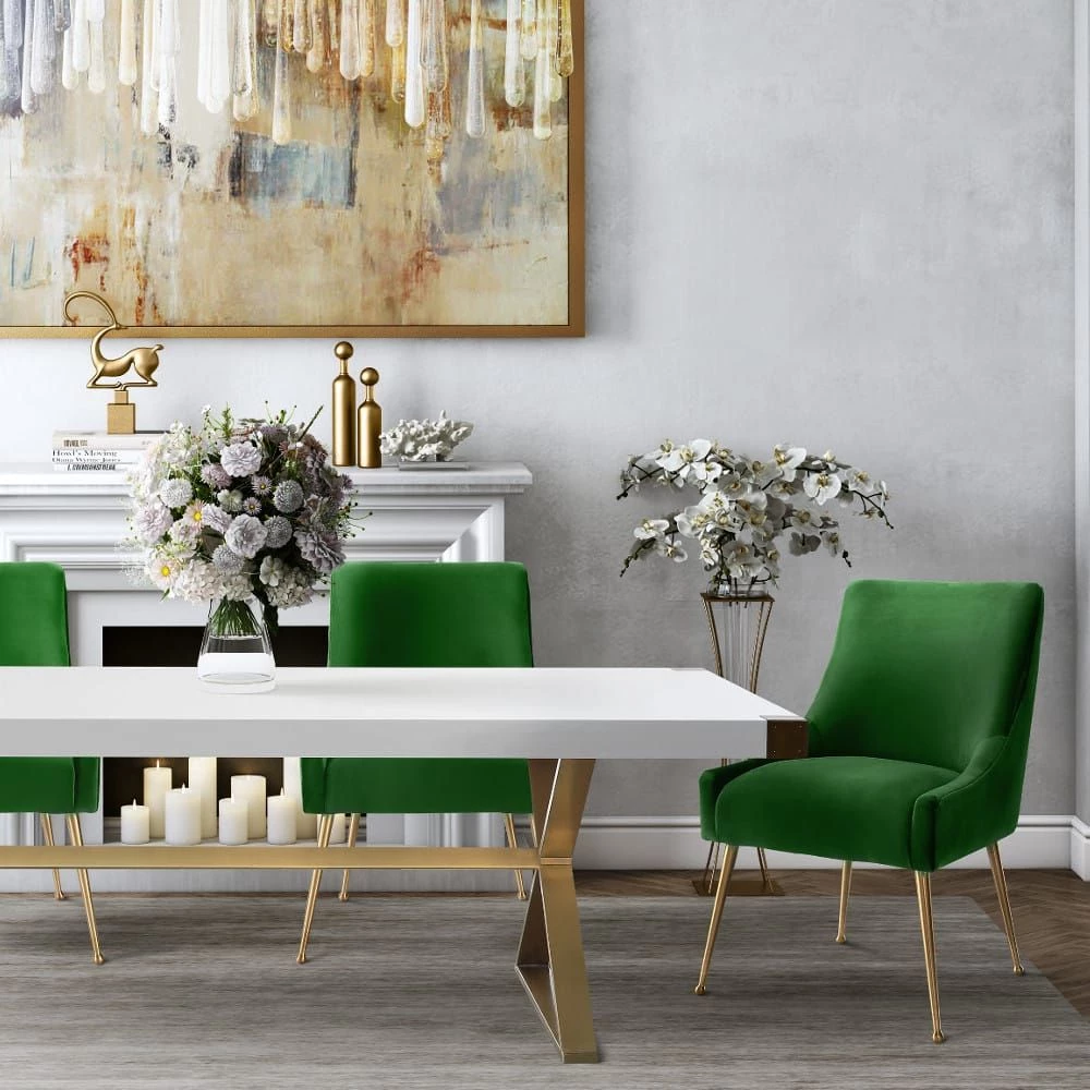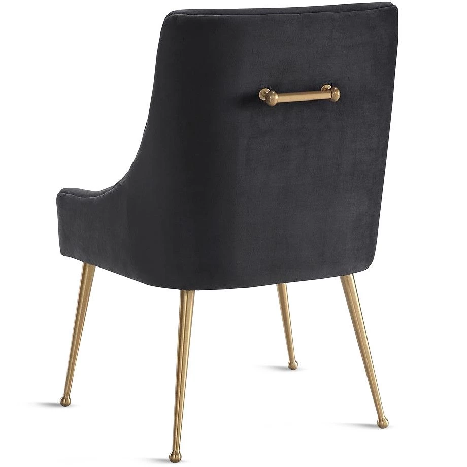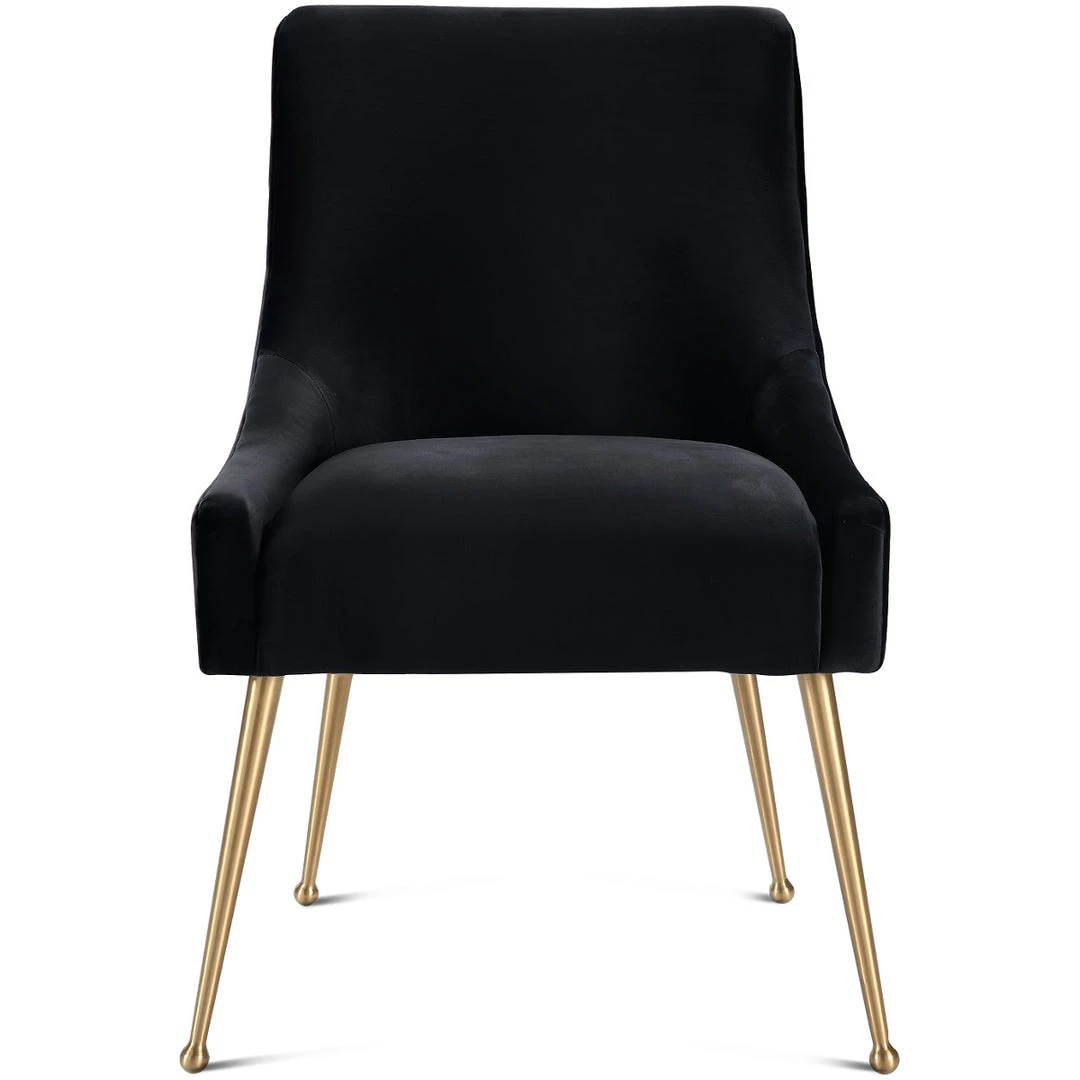 With plush velvet upholstery, brushed brass legs and a plump silhouette worth sinking into, this classic design of our Piper Chair features an armless profile and a brass handle on back.