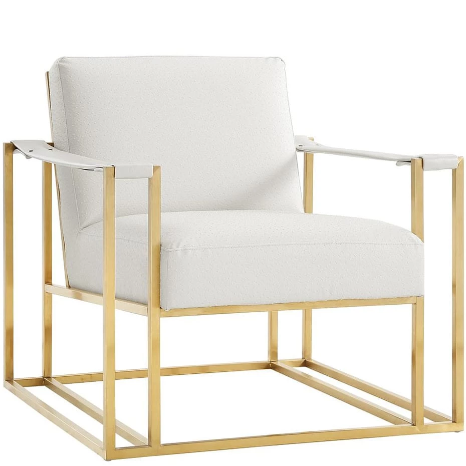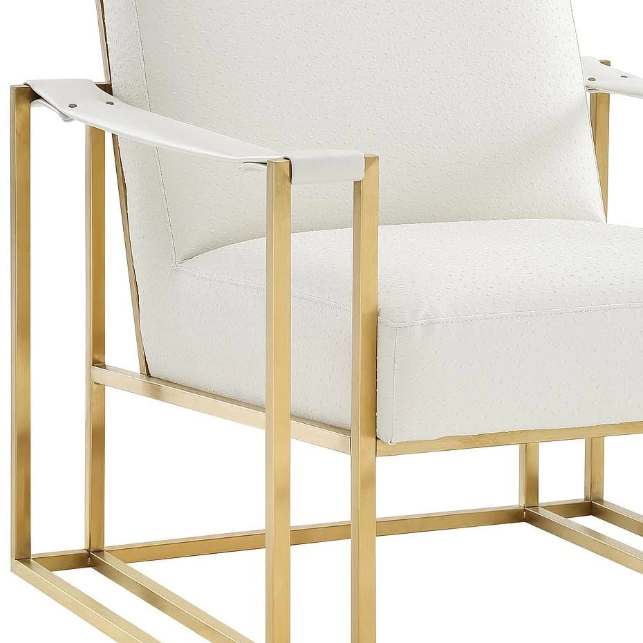 TOV STANFORD ARM CHAIR: IVORY ECO LEATHER, GOLD Living Room