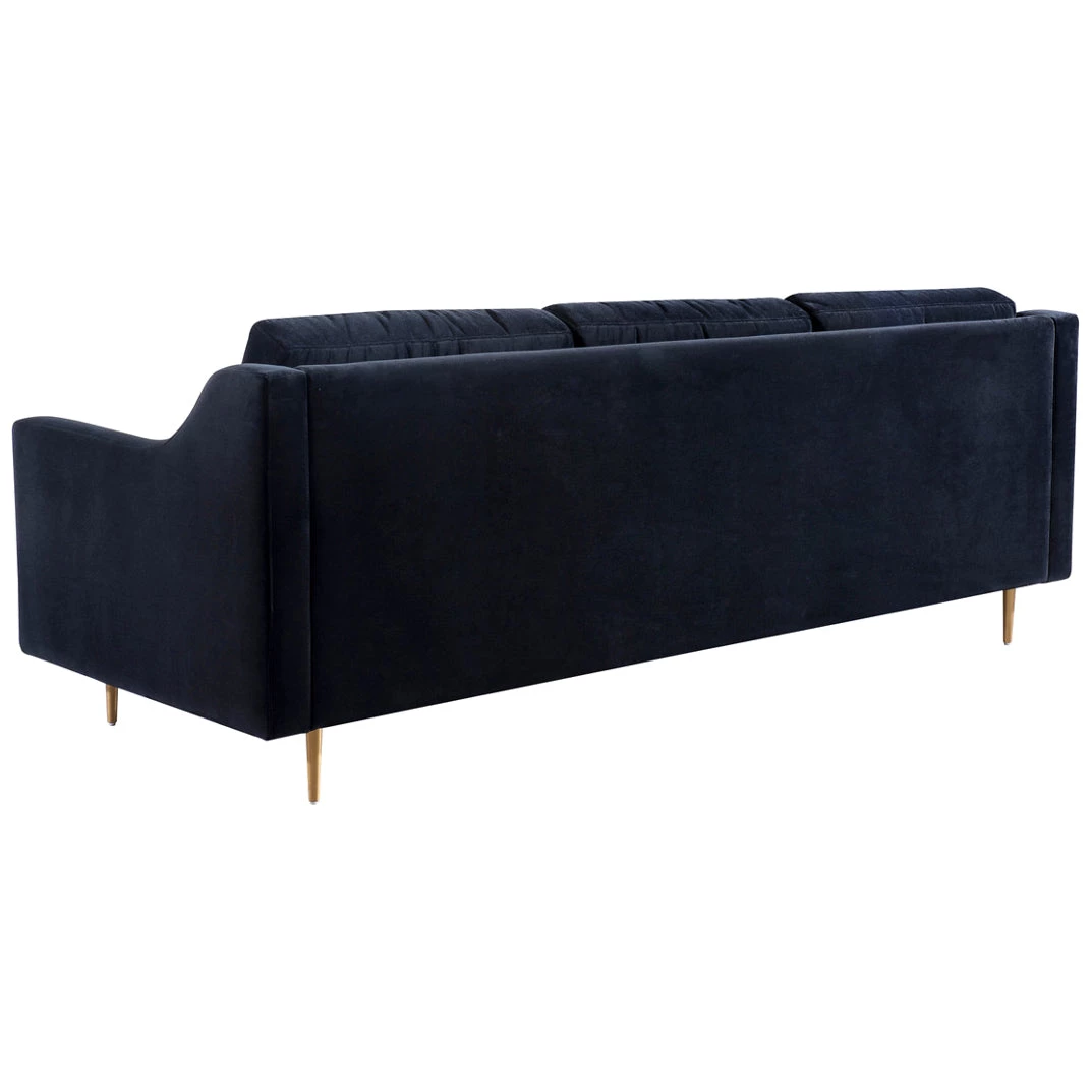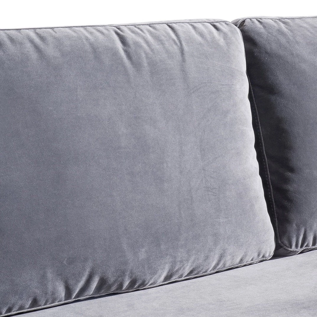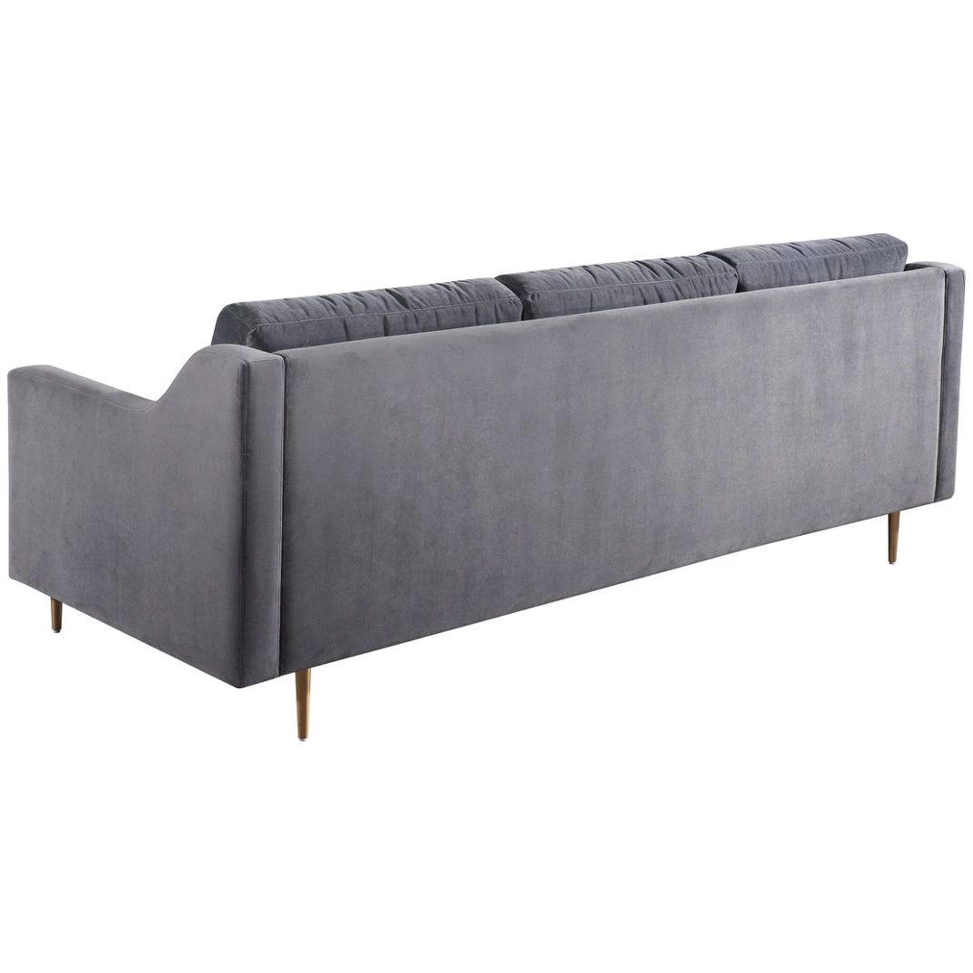 Stevie’s clean, mid-century lines soften beautifully in plush velvet while slim metal legs offer iconic style in a sophisticated brass finish. This tailored silhouette of the Stevie Sofa is gorgeous to behold, and even better to curl up in. Available in black or gray super soft polyester velvet.