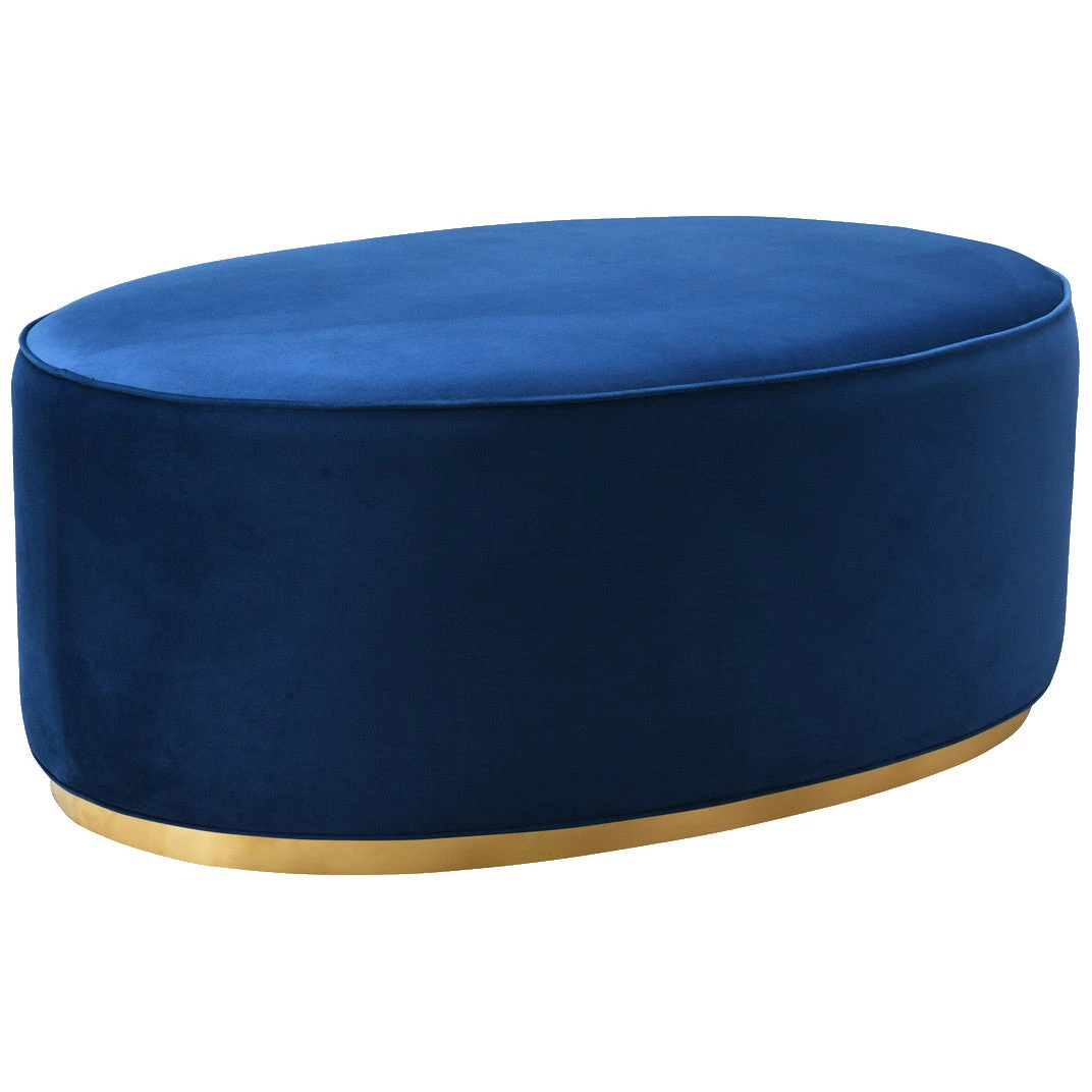 TOV TULA OVAL VELVET COCKTAIL OTTOMAN: NAVY Living Room