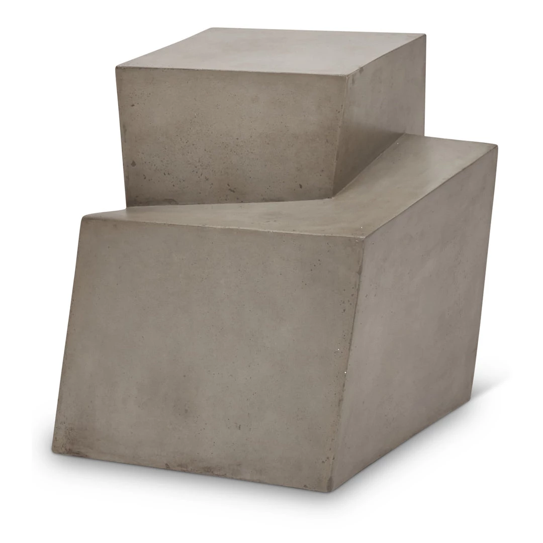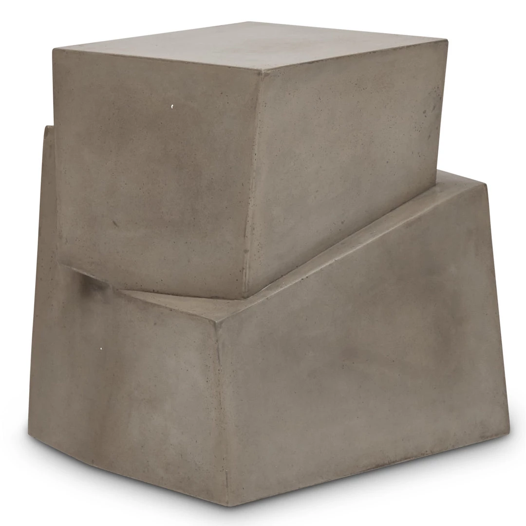 A modern work of art, this concrete end table is suitable for indoor or outdoor use. Over time this item will develop a unique patina and personality, reflecting the surprising evolutionary nature of its industrial material.
