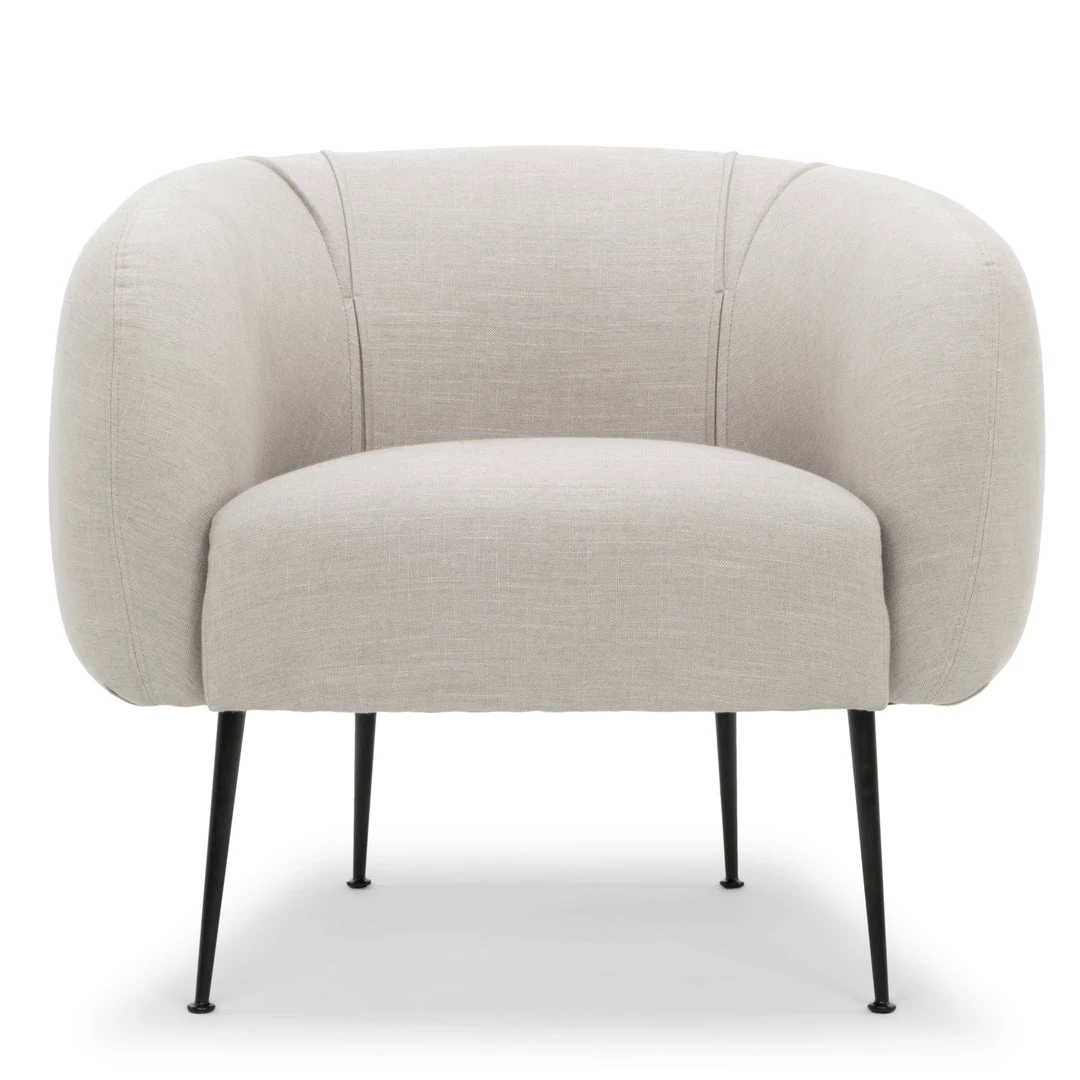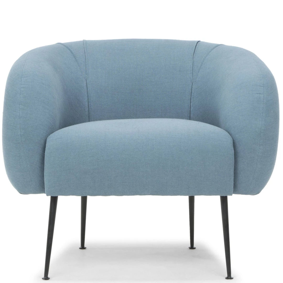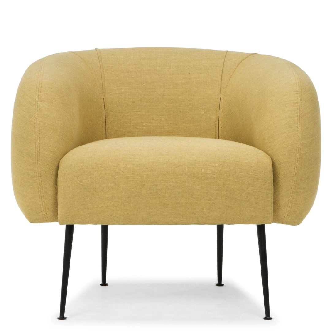 The generous cushion, curvaceous barrel silhouette, and slim metal legs offers hints of mid-century modern glam from every perspective. The Sepli Chair bright linen-blend fabric provide comfort on sturdy matte brass metal legs. Made from solid pine, a firm Dacron fill, the Sepli is durable and comfortable.