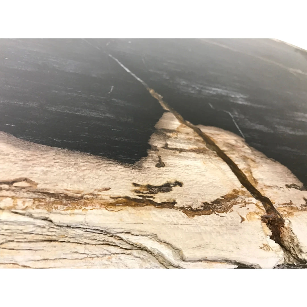 The Masso Petrified Wood Coffee Table’s natural materials offer a unique variation of taupe, cream, black, and natural combinations. Some cracking and natural occurrences are to be expected.