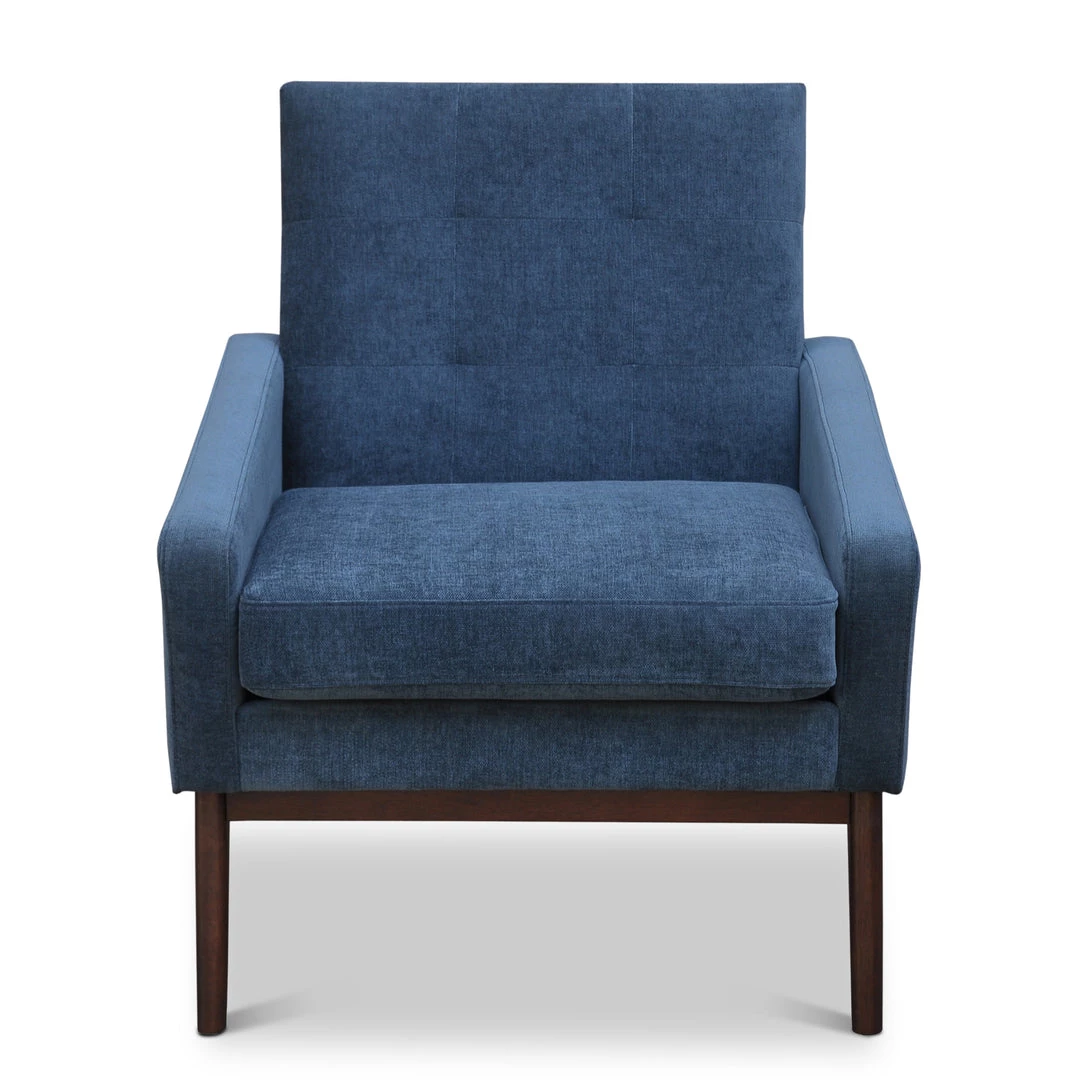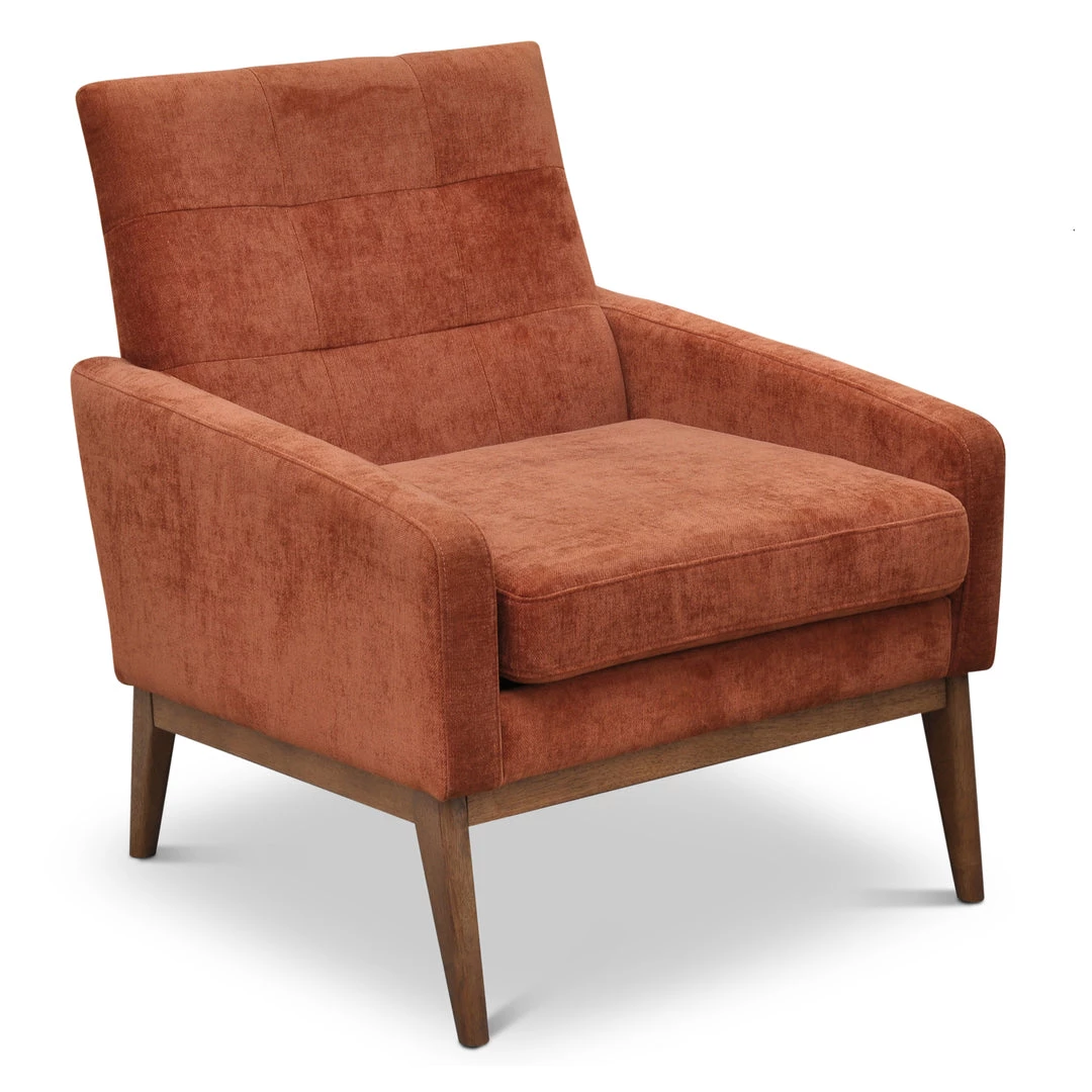 A sleek hi-style lounge chair tapered to perfection with modern tufting and beautifully upholstered in vibrant textured velvet.