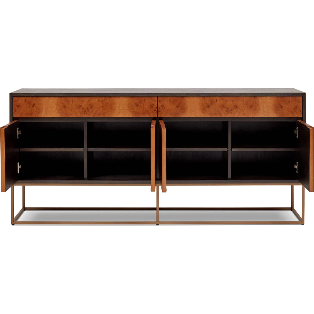 The Yoga sideboard in oak burl offers adds a handsome look to classic mid-century style. The rich tones will work wonders for your dining room while the drawers and cabinets offer ample storage for all your serving ware.