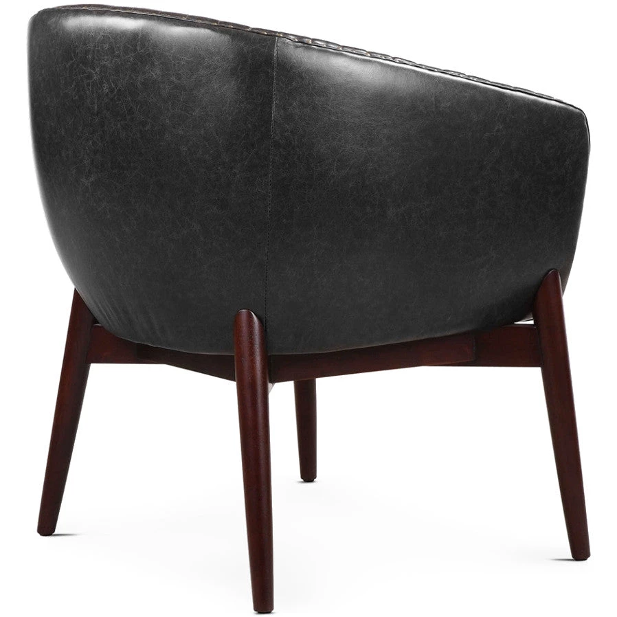 This High Style Design Features A Modernized Take On Scandinavian Style With “V” Shaped Channel-stitched Faux Leather, Distressed In A Casual Onyx With Contrasting Antiqued Brass Nail Head Trim. The Seat Rests In A Solid Oak Wood Frame Finished In A Smooth Walnut Stain.