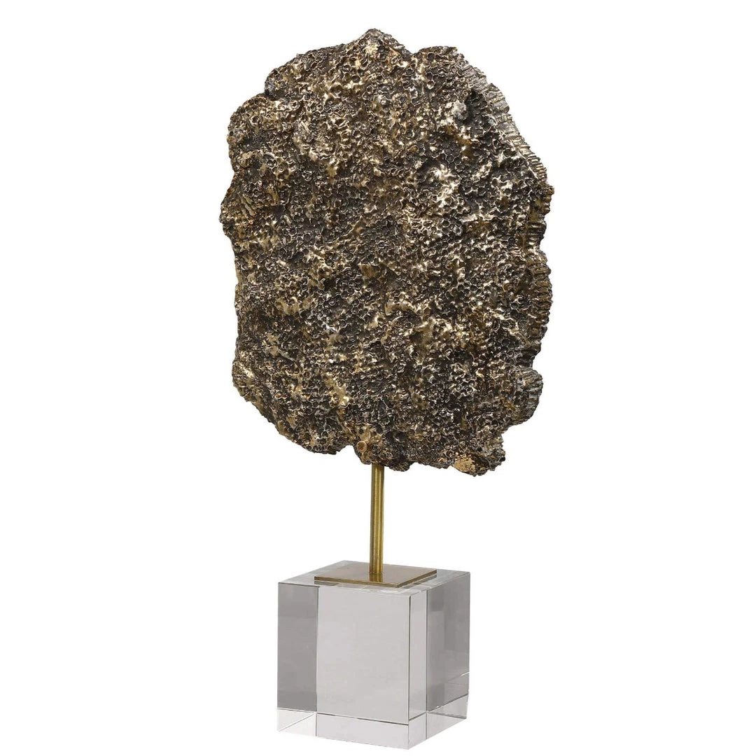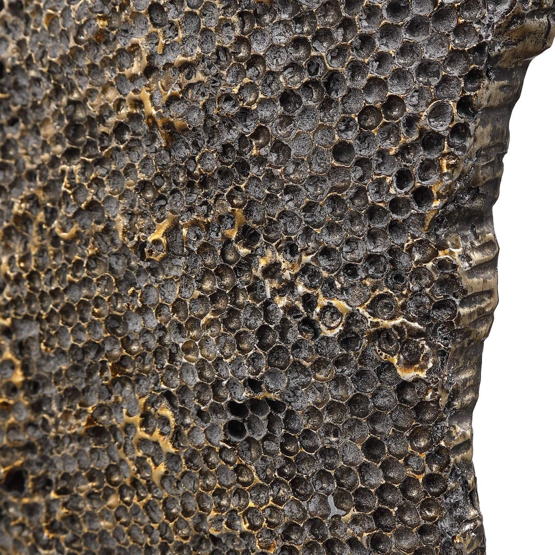 Inspired by a natural honeycomb, this sculpture showcases intricately carved details finished in antique gold and accented by a crystal foot.