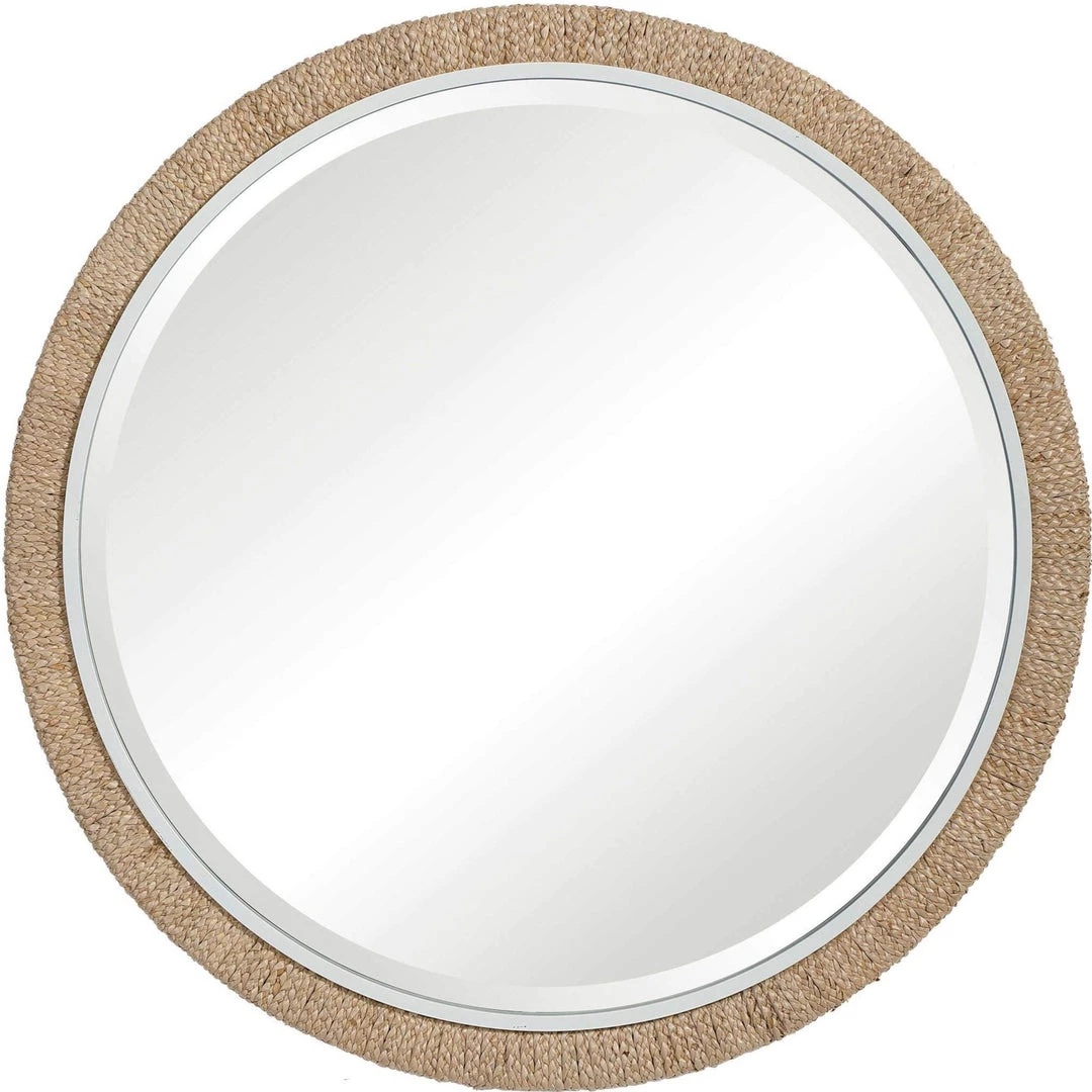 Influenced by modern coastal style, this round mirror has a braided banana leaf and matte white frame exuding a light and airy feel. The piece is accented by a generous 1 1/4″ bevel.
