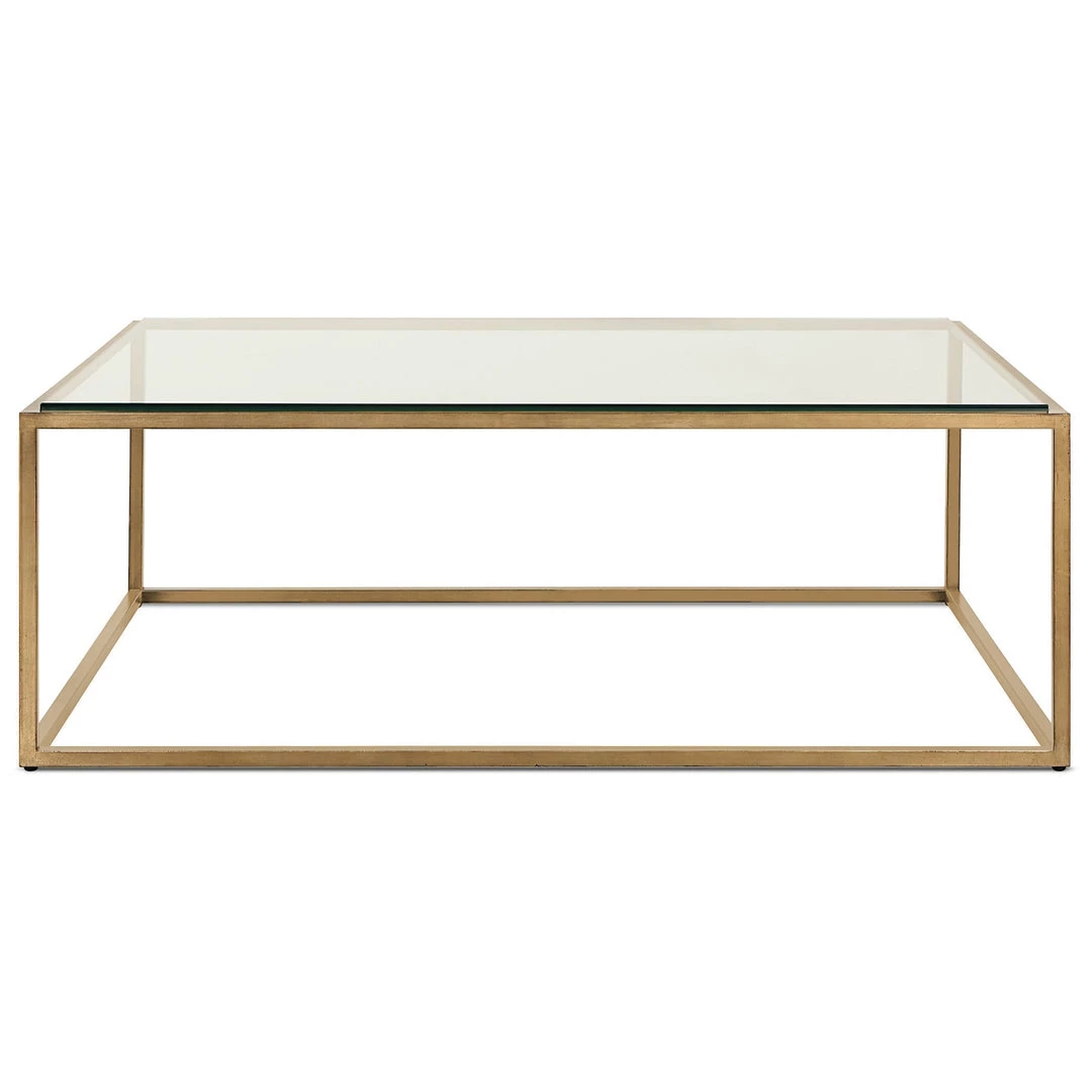 A complement to virtually any style, this coffee table features a streamline iron frame finished in brushed gold leaf with an inset tempered glass top.