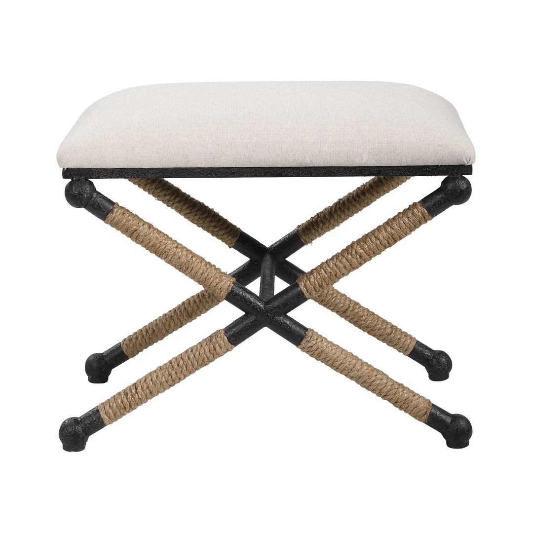 With its rustic iron frame wrapped in natural fiber rope accents the Braddock ottoman bench exudes beach house charm with it’s cushioned top covered in a natural canvas cotton-blend upholstery. Stand alone or use in a pair at the end of a bed.