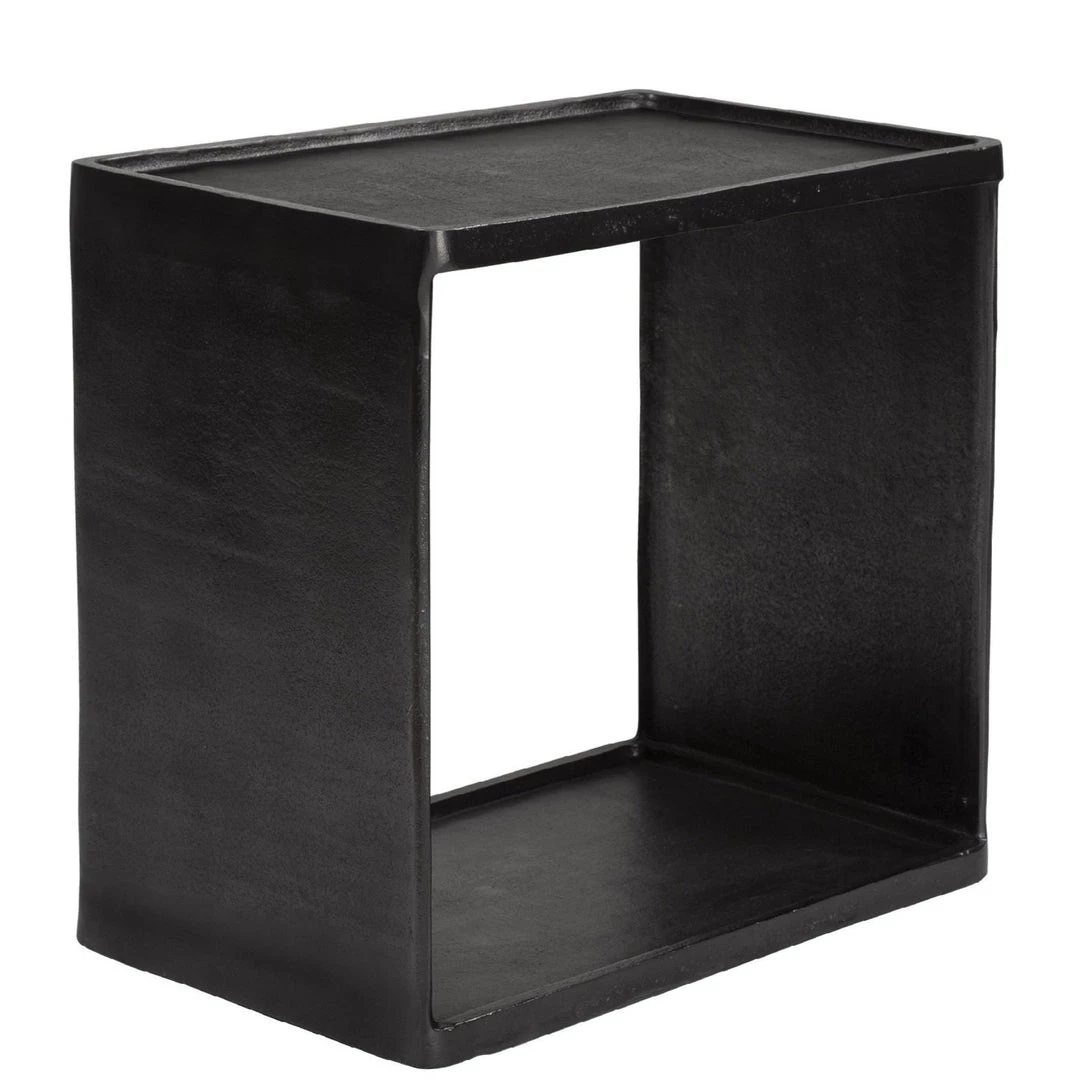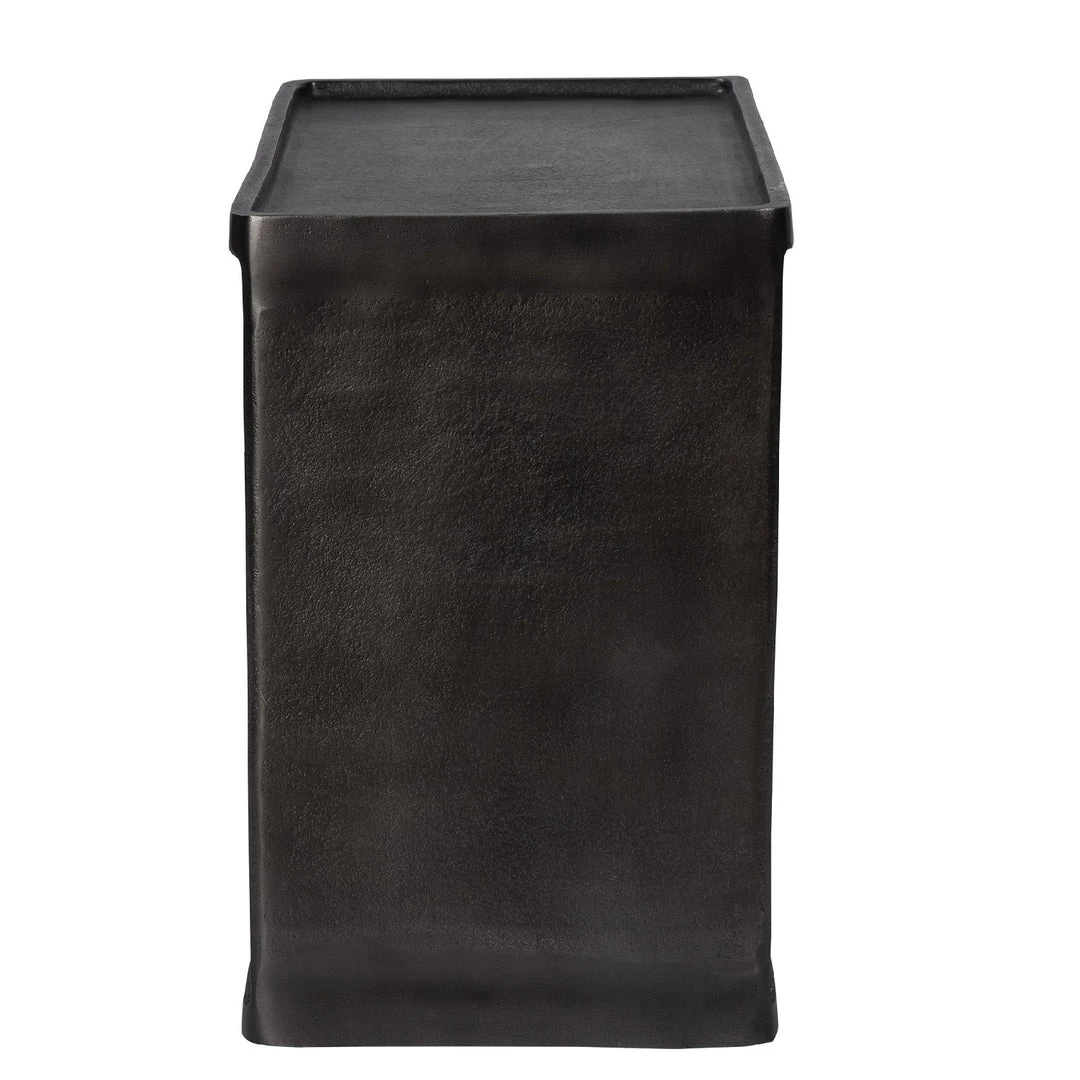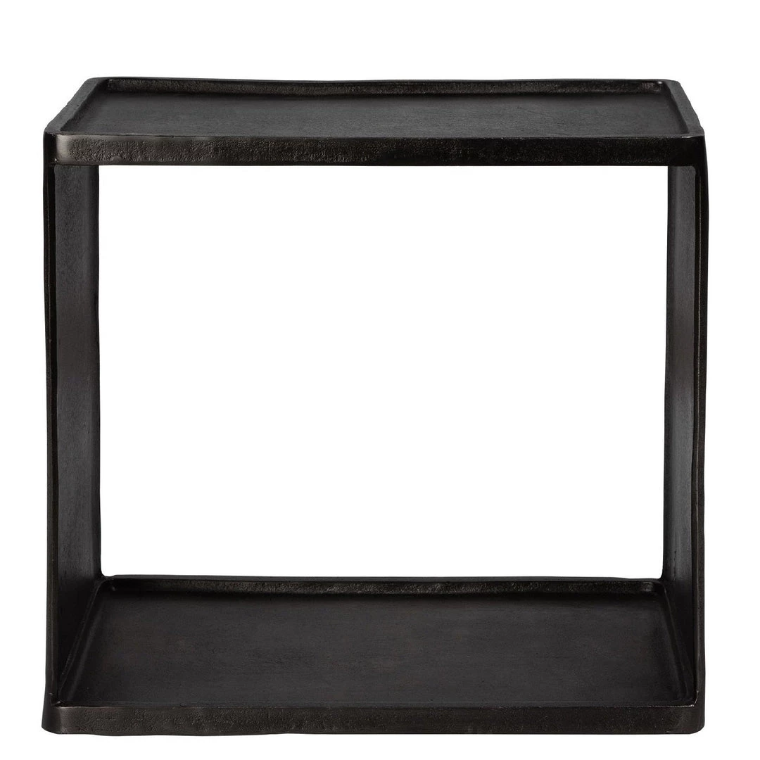 Taking inspiration from industrial style, this cast aluminum accent table features a masculine look with a tray style top in a dark antique nickel finish. The open center allows for extra display space.