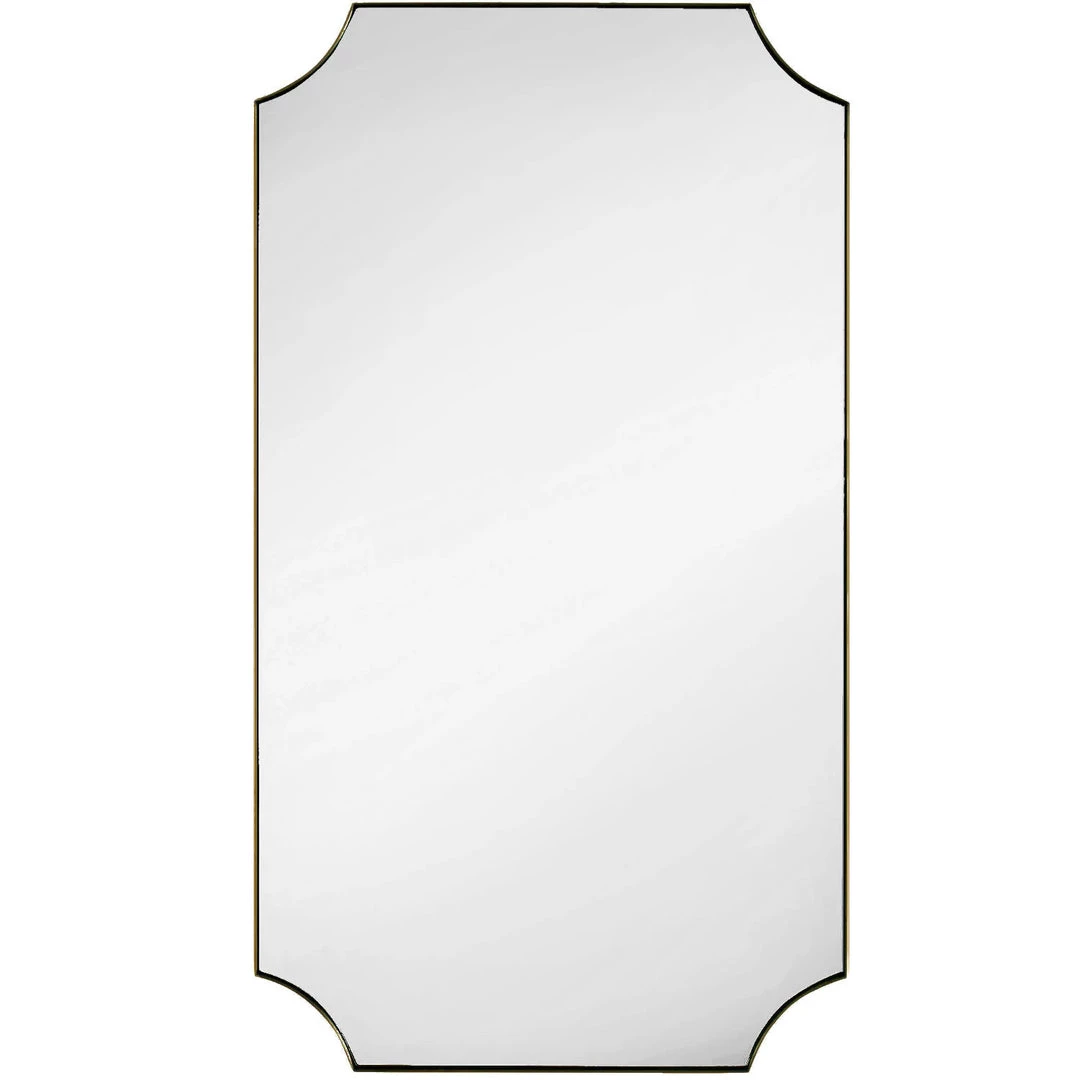 A stylish take on updated traditional style, this mirror features a stainless steel frame finished with scalloped corner detailing.