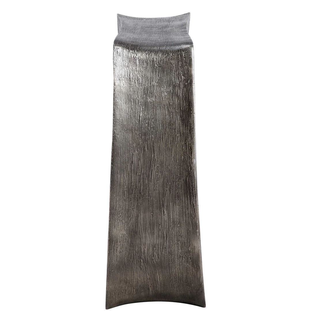 Mixing art with function, this unique accent table fits perfectly beside a chair offering a resting place for a drink or book. Finished in a heavily textured antique silver.
