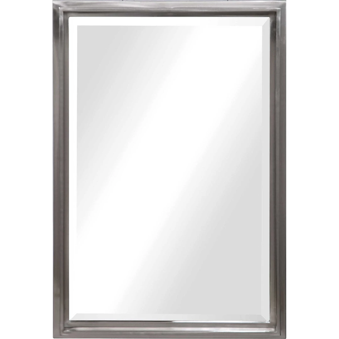 Versatile in design, this vanity mirror displays a simple rectangular shape. The mirror is finished in brushed silver and has a framed accent that adds dimensional interest.