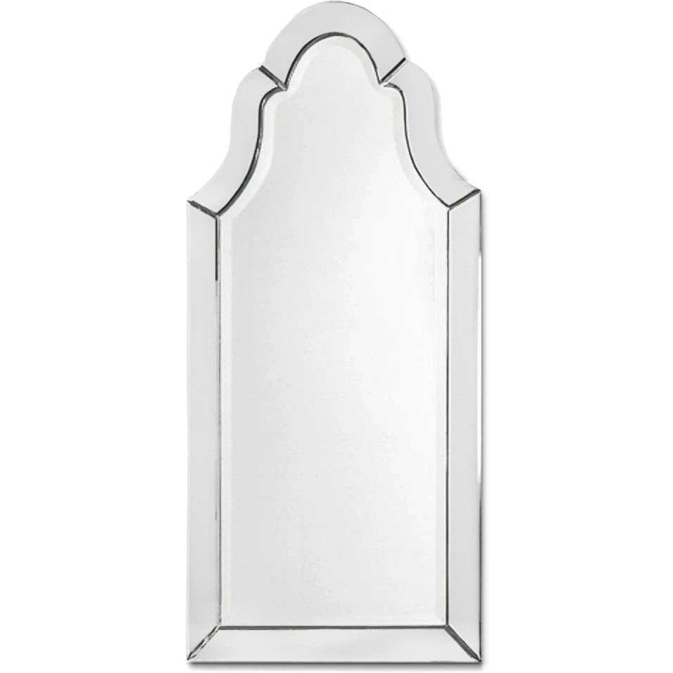 This frameless, arched mirror has polished edges for a smooth, clean finish. The etching and v-grooves give wonderful character to this beveled mirror.