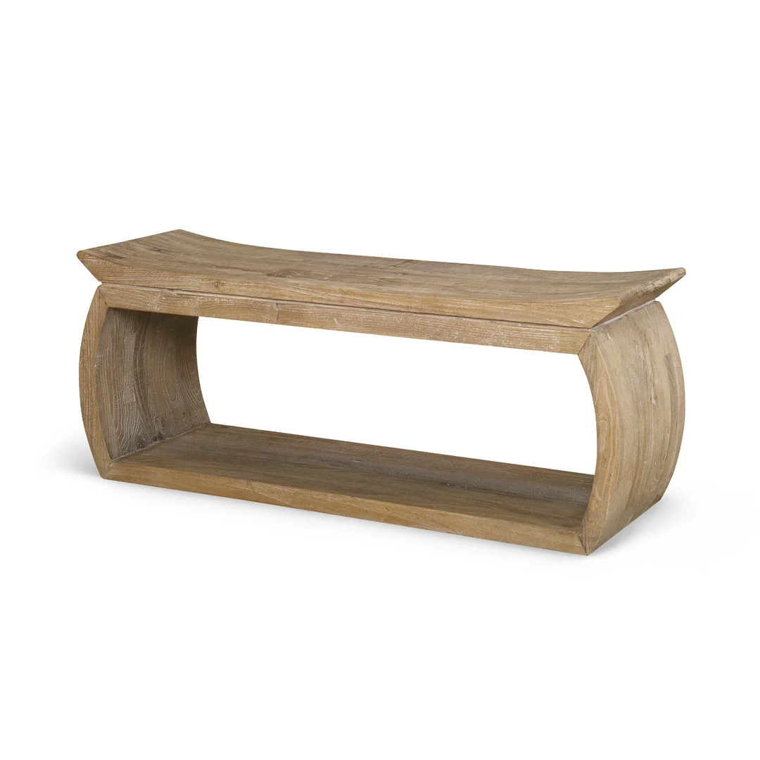 Built of 100% reclaimed elm wood, featuring an eye-catching scooped seat. Each piece is complete with rich graining, distress marks and shading, showcasing the unique history of each board.