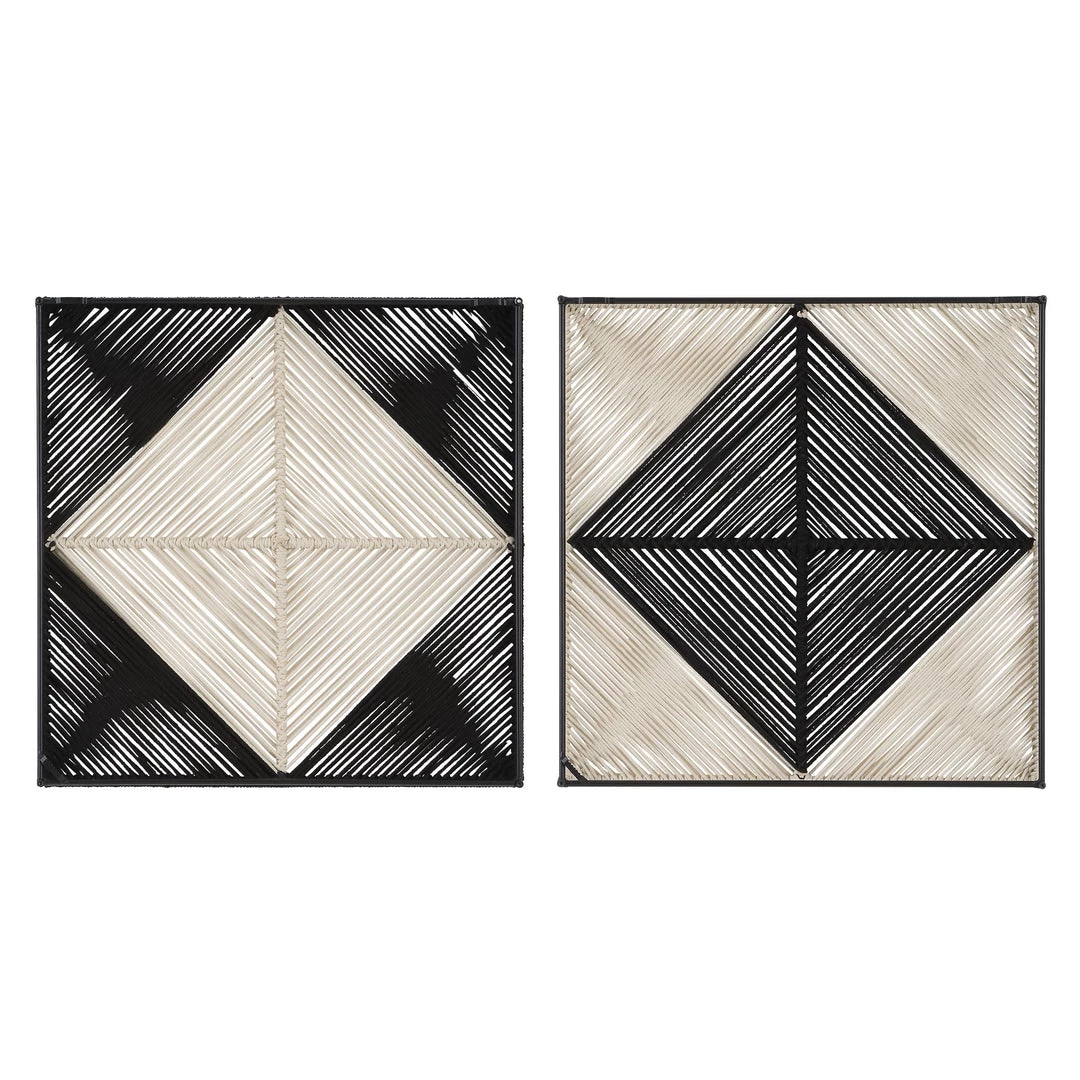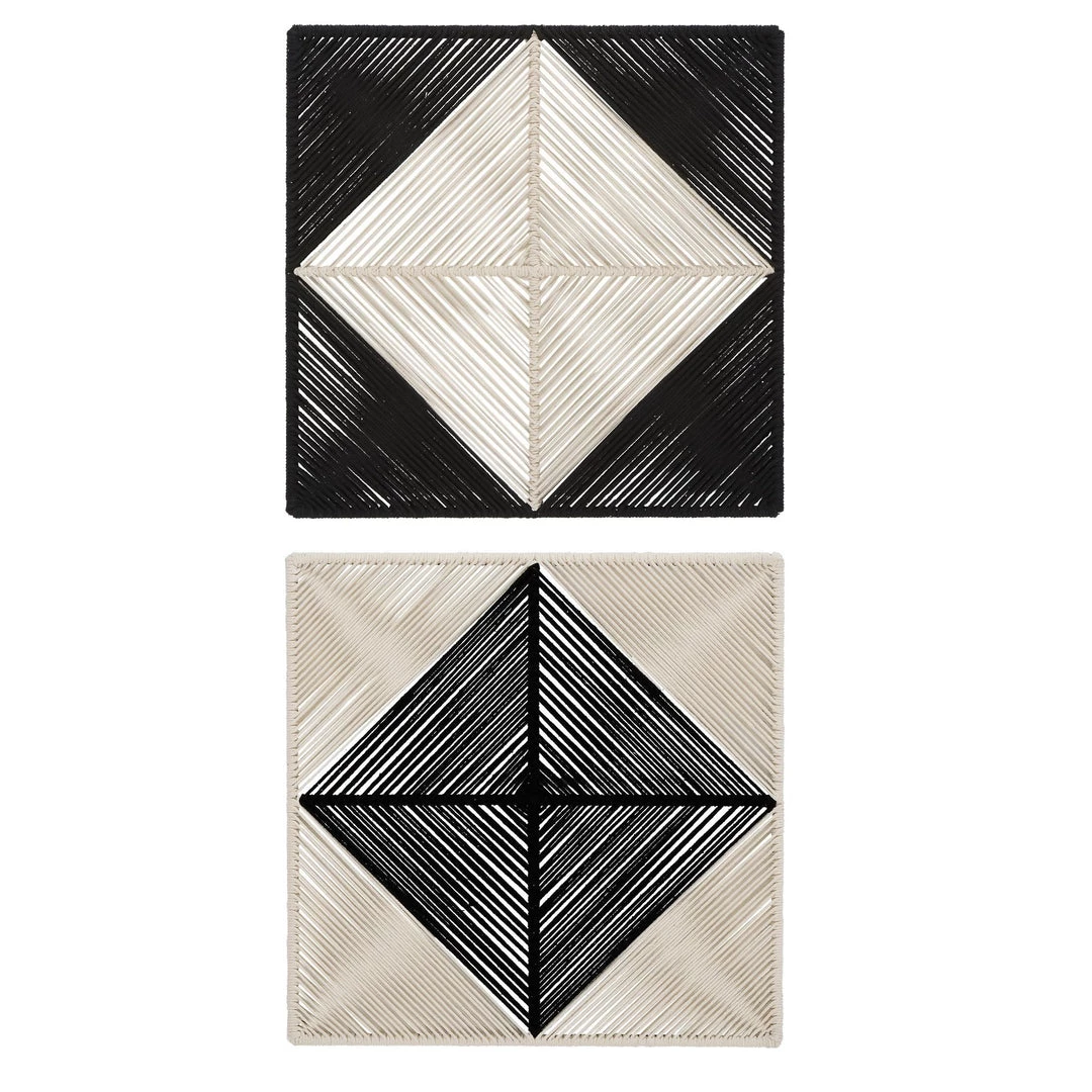 These modern wall panels are each others yin and yang. Featuring hand wrapped natural rope in black and off-white, over an iron framework.