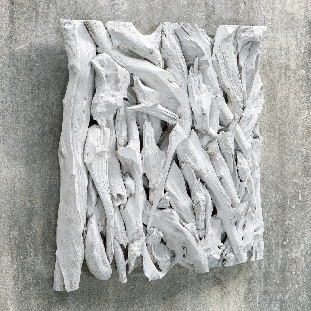 Artfully constructed from teak branches, this wood wall tile features a casual coastal style in a white washed finish.