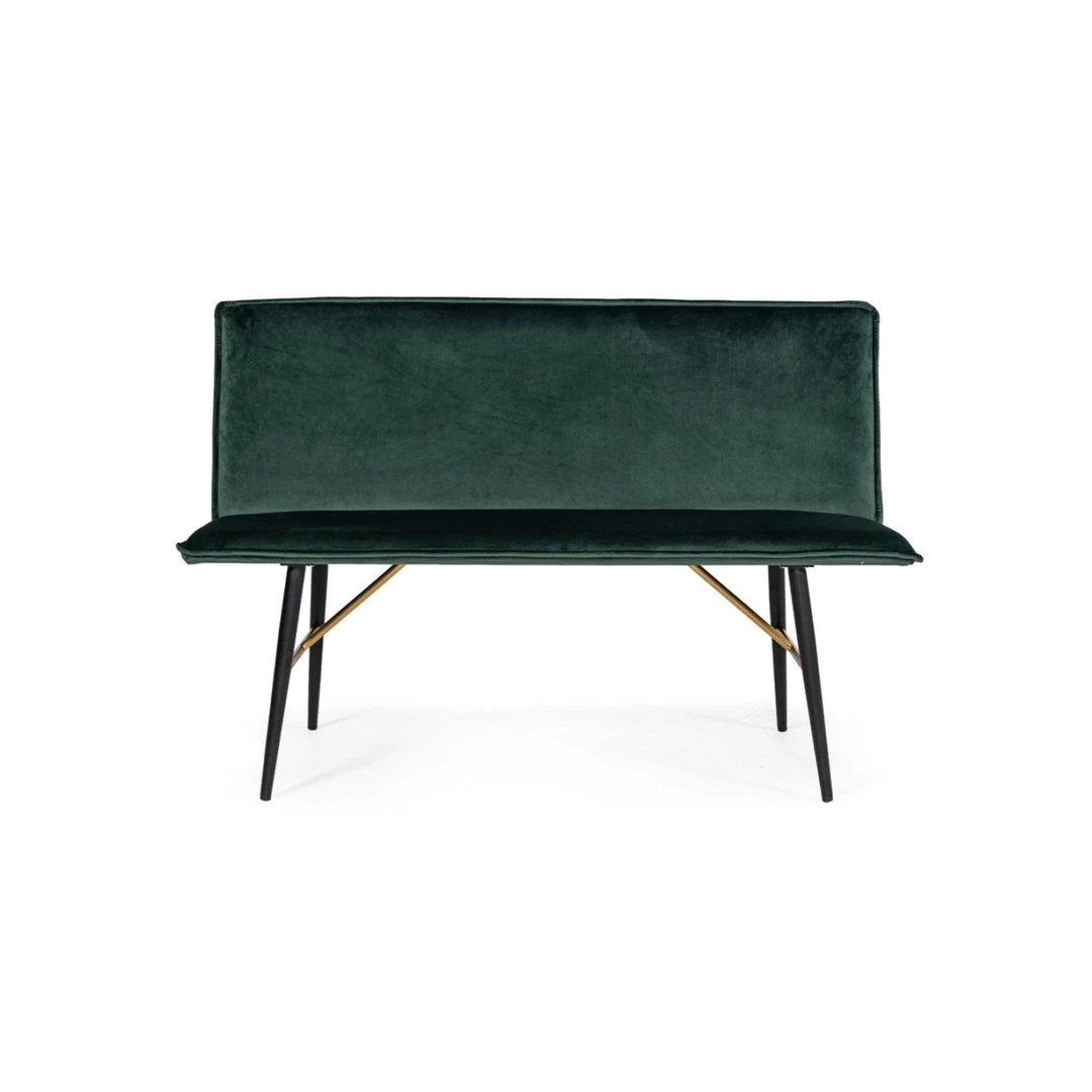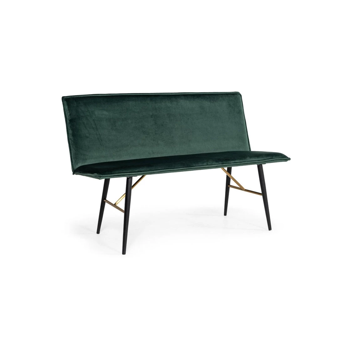 With eye-catching green velvet upholstery and slim black iron frame with gold leg supports, this modern dining bench is designed for fun family dinners and parties alike.