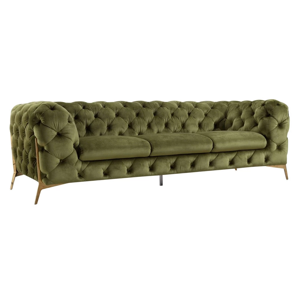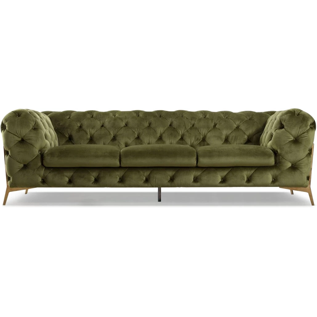 With old Hollywood glam inspired styling, Dietrich offers an updated take on a traditional tufted sofa. Featuring high-quality construction, a luxurious plump silhouette with all over deep button tufting in soft velour upholstery.