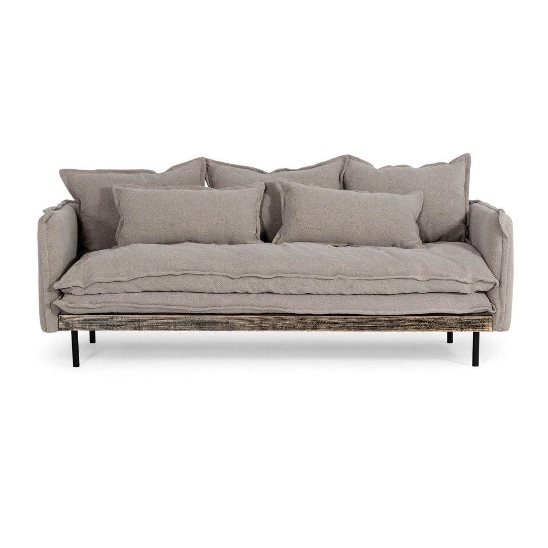 Ranger features a rustic wood bench-style design topped with feather-blend cushions for seating you can to sink in to. Textural upholstery, flange stitched edges, and scatter back pillows make this cozy casual sofa feel extra inviting.
